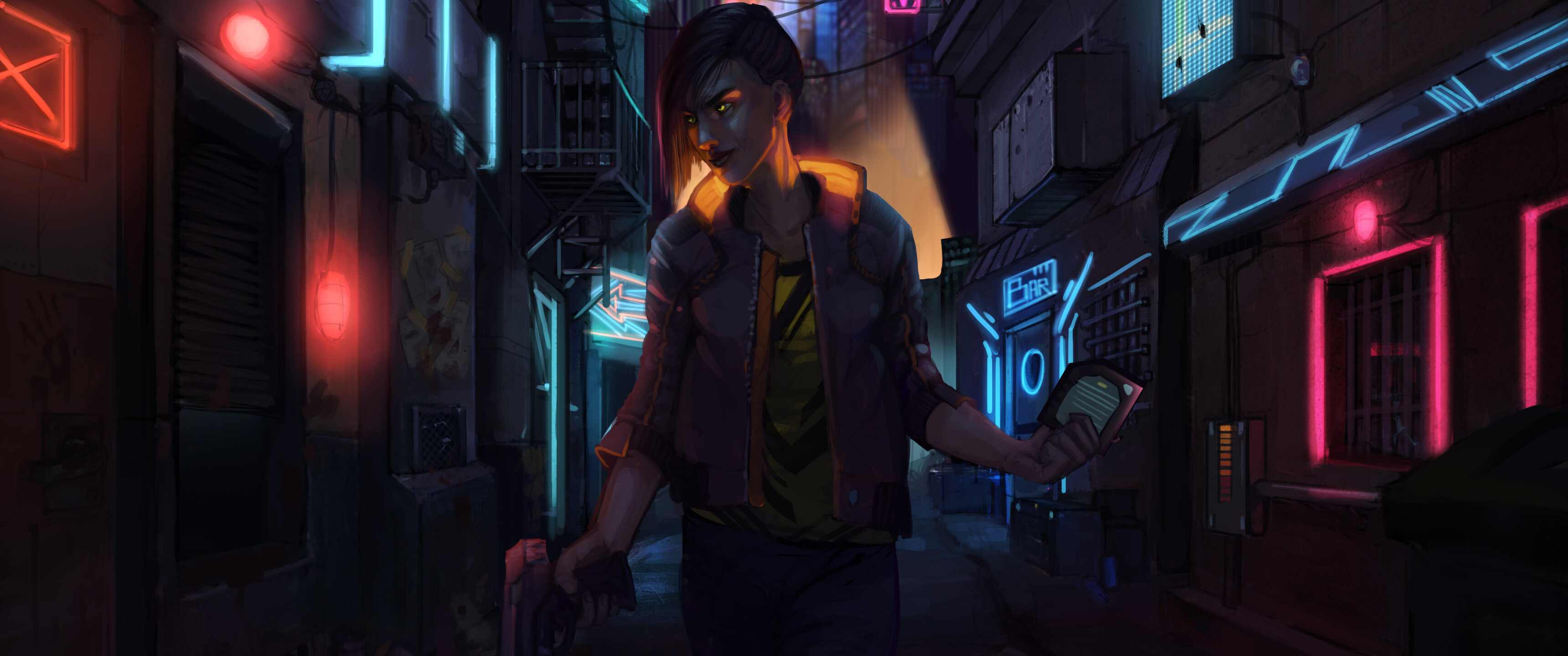 Cyborg Girl V on Streets of Cyberpunk 2077 - 3440x1440 Ultra WQHD