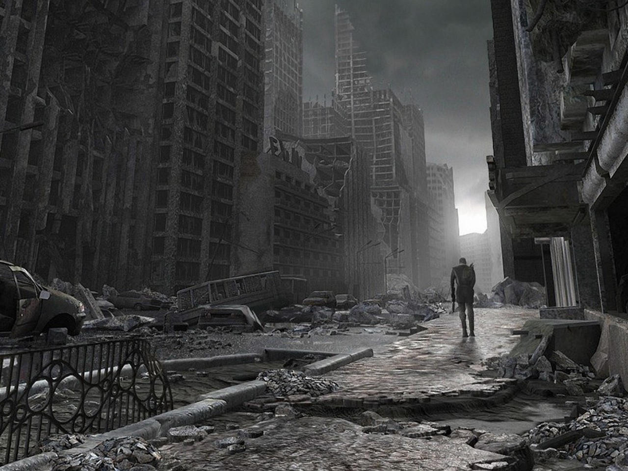 Destroyed Abandoned City and Lonely Survivor - 1280x960