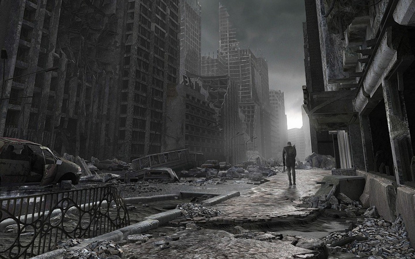 Destroyed Abandoned City and Lonely Survivor - 1440x900