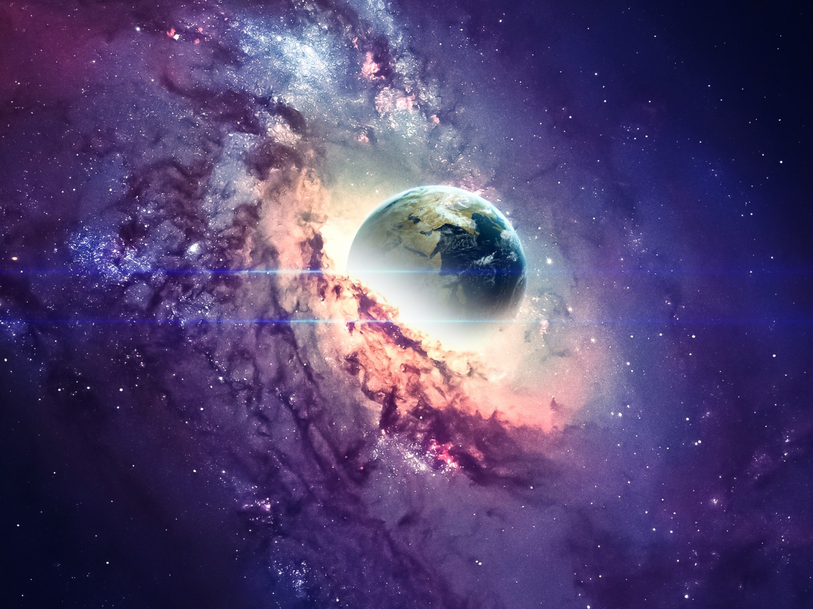 Earth in Purple Galaxy - 1600x1200