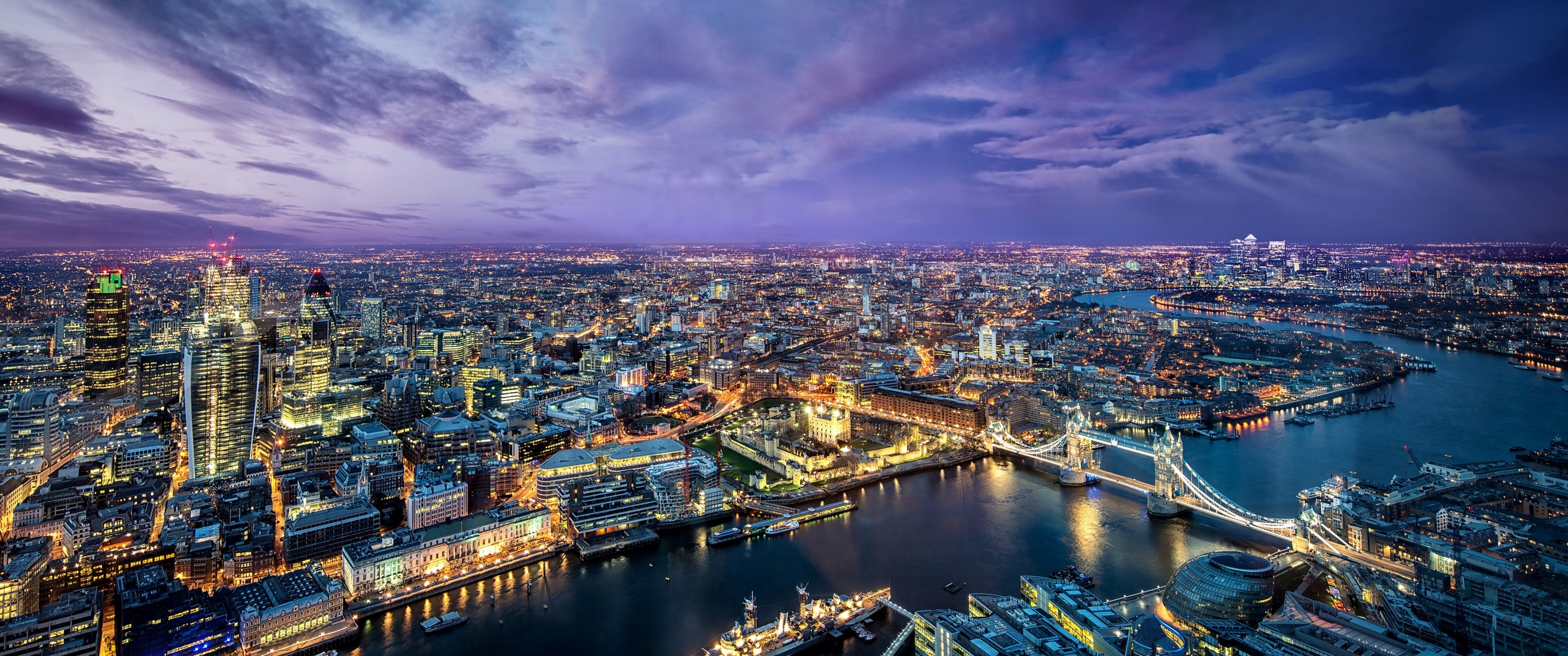 Evening Big City and River - 3440x1440 Ultra WQHD