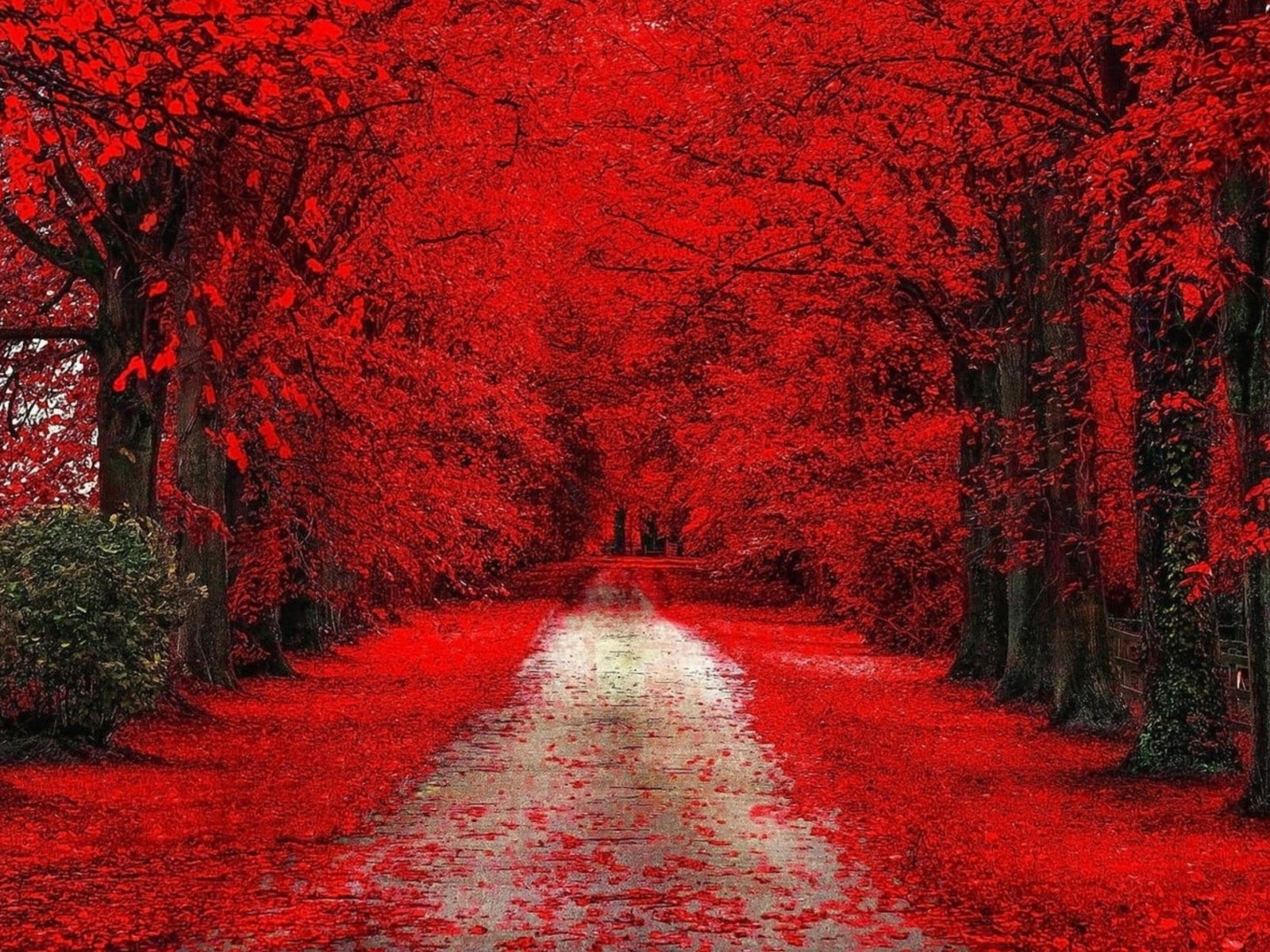 Fall Red Leaves on Ground - 1600x1200