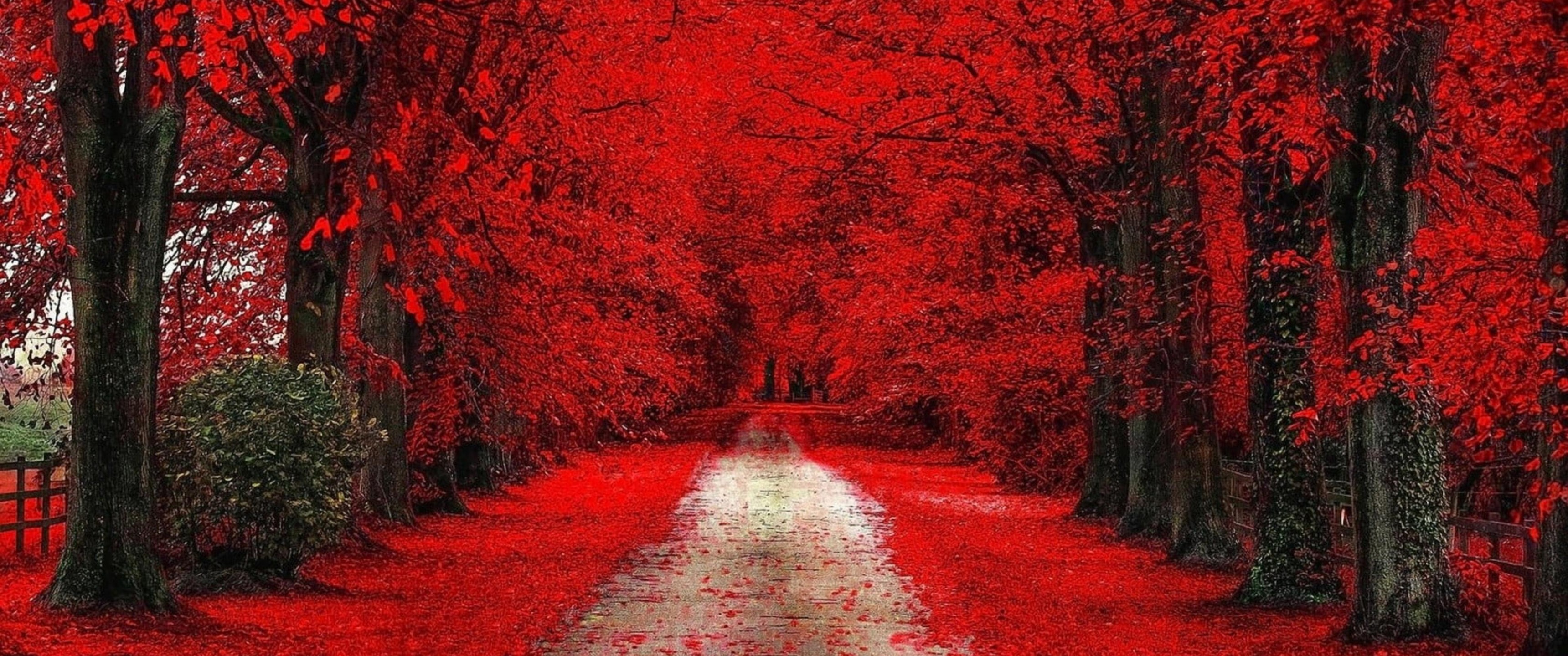 Fall Red Leaves on Ground - 3440x1440 Ultra WQHD