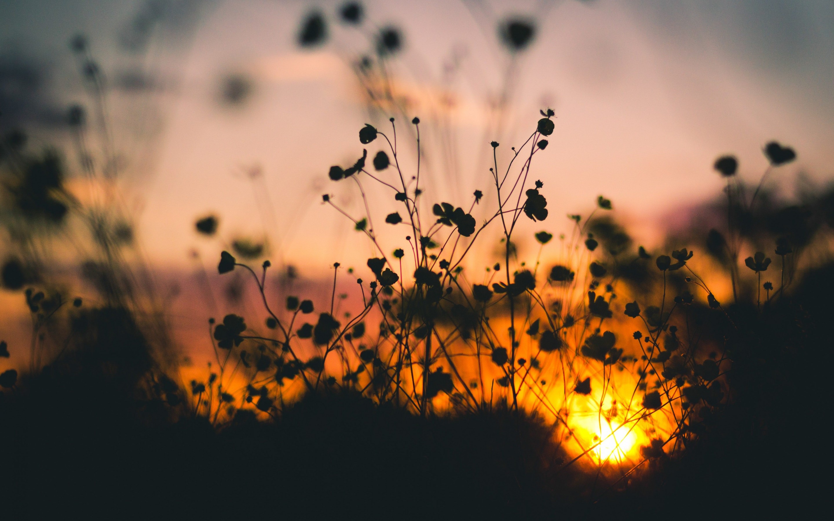 Flowers Silhouette and Orange Sunset - 2880x1800