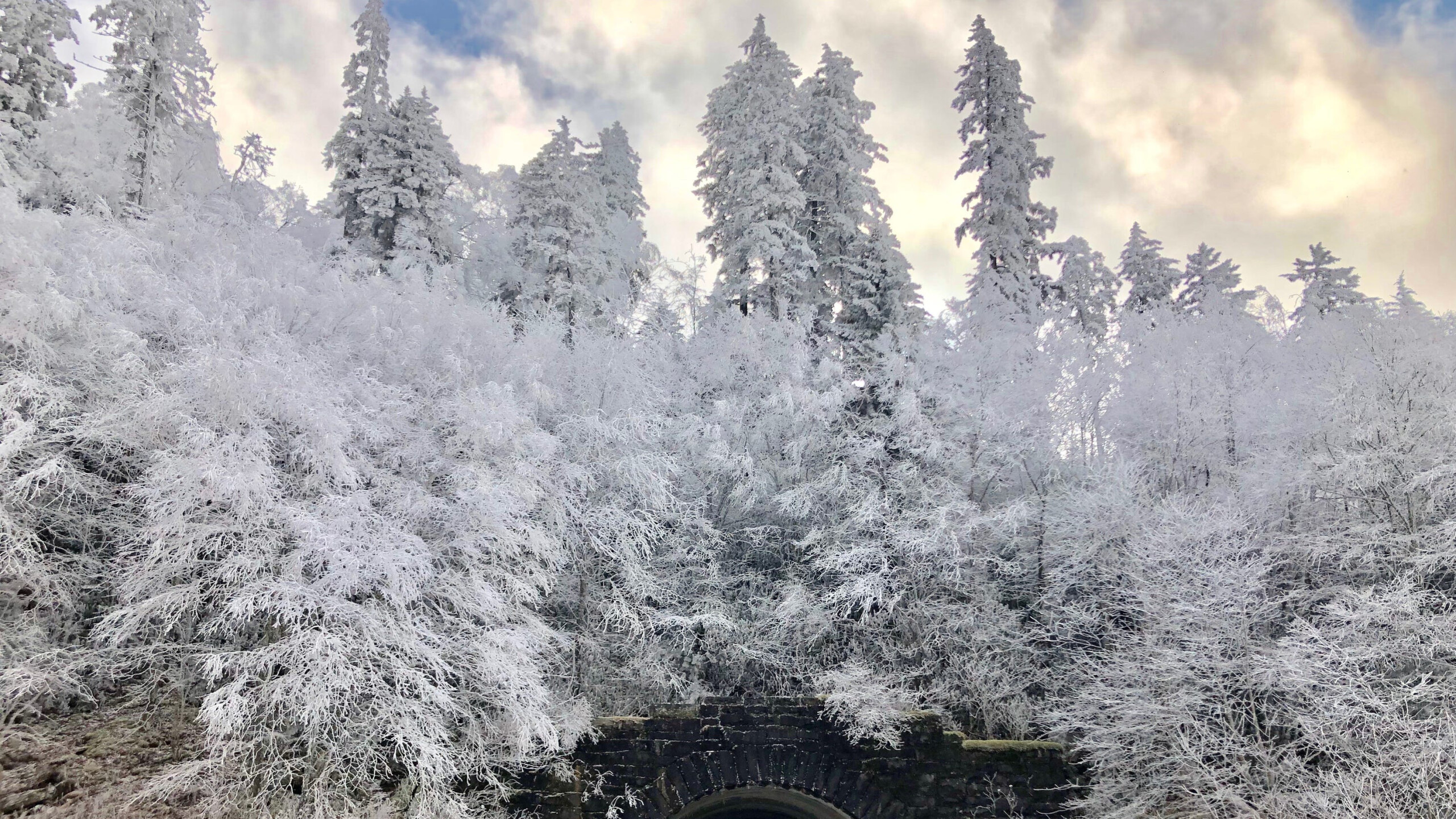 Frosty Trees and Old Bridge - 2560x1440