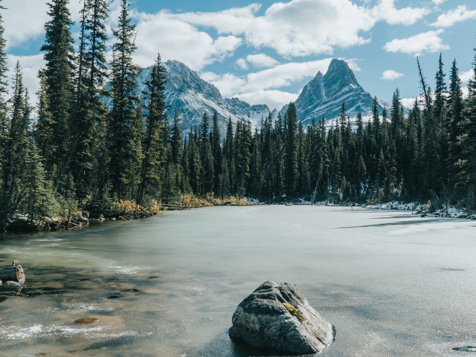 Frozen Lake and Forest in Jasper National Park of Canada - 1600x1200