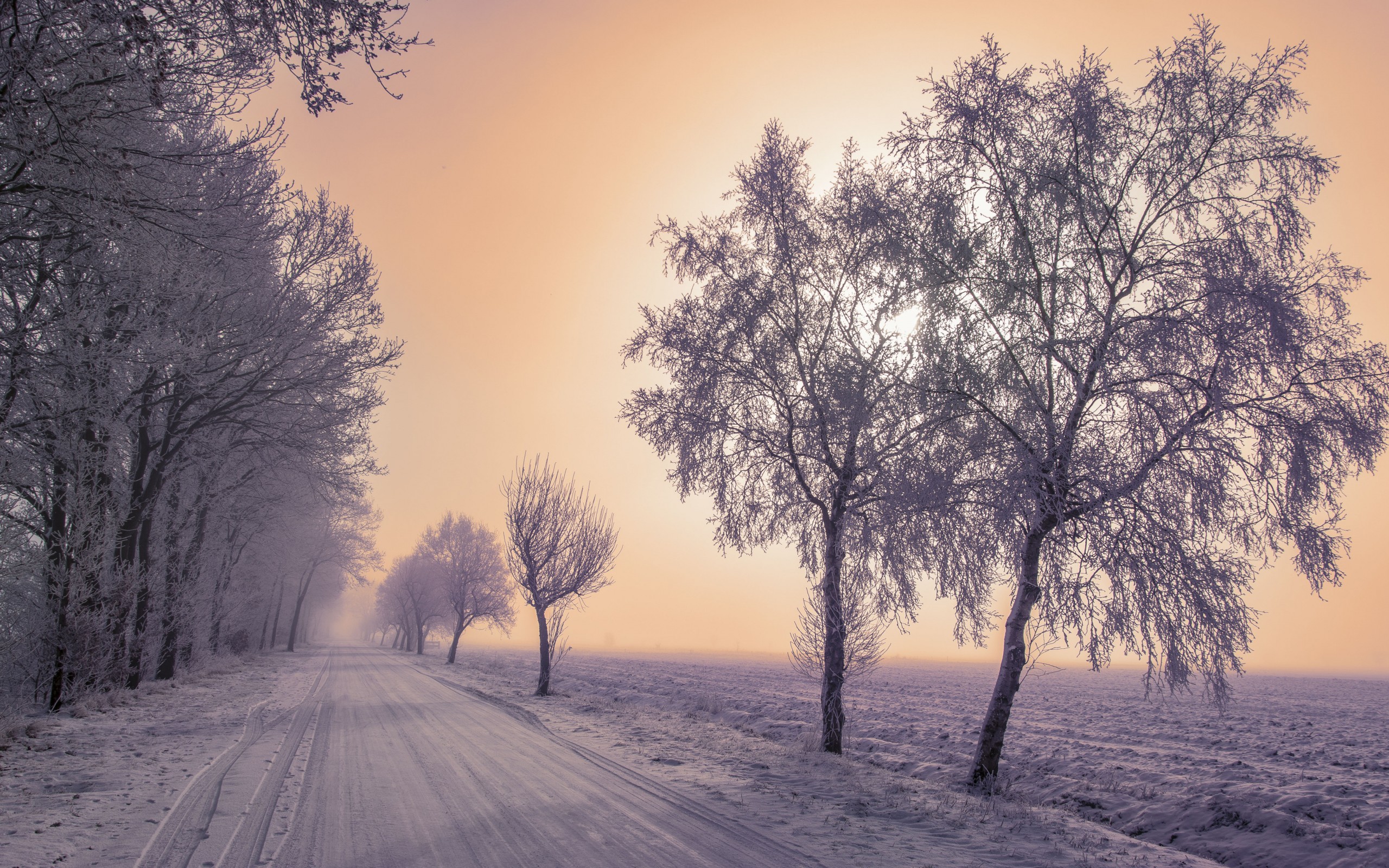 Frozen Trees Around The Road - 2560x1600