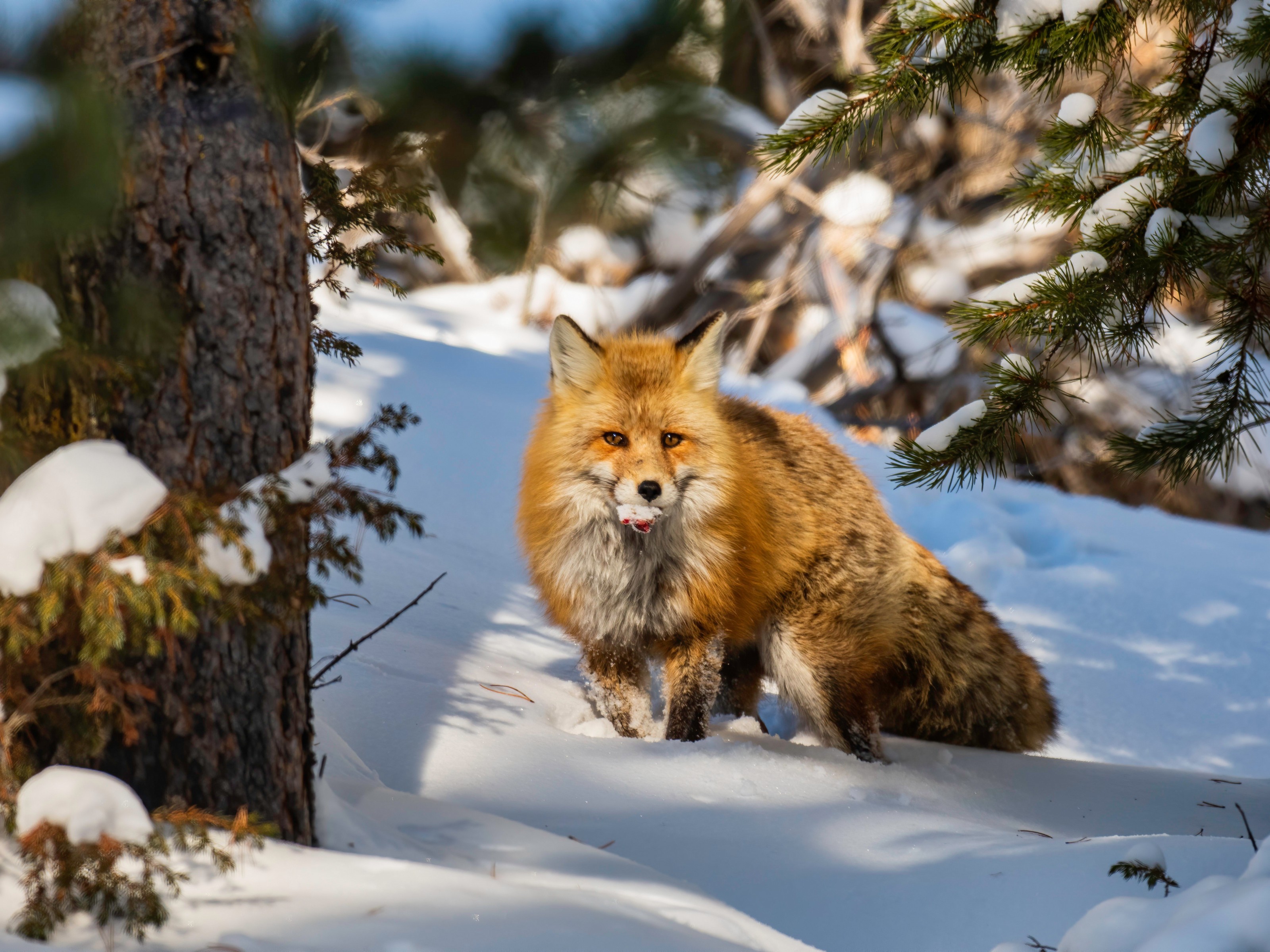 Funny Orange Fox in Winter Forest - 3200x2400
