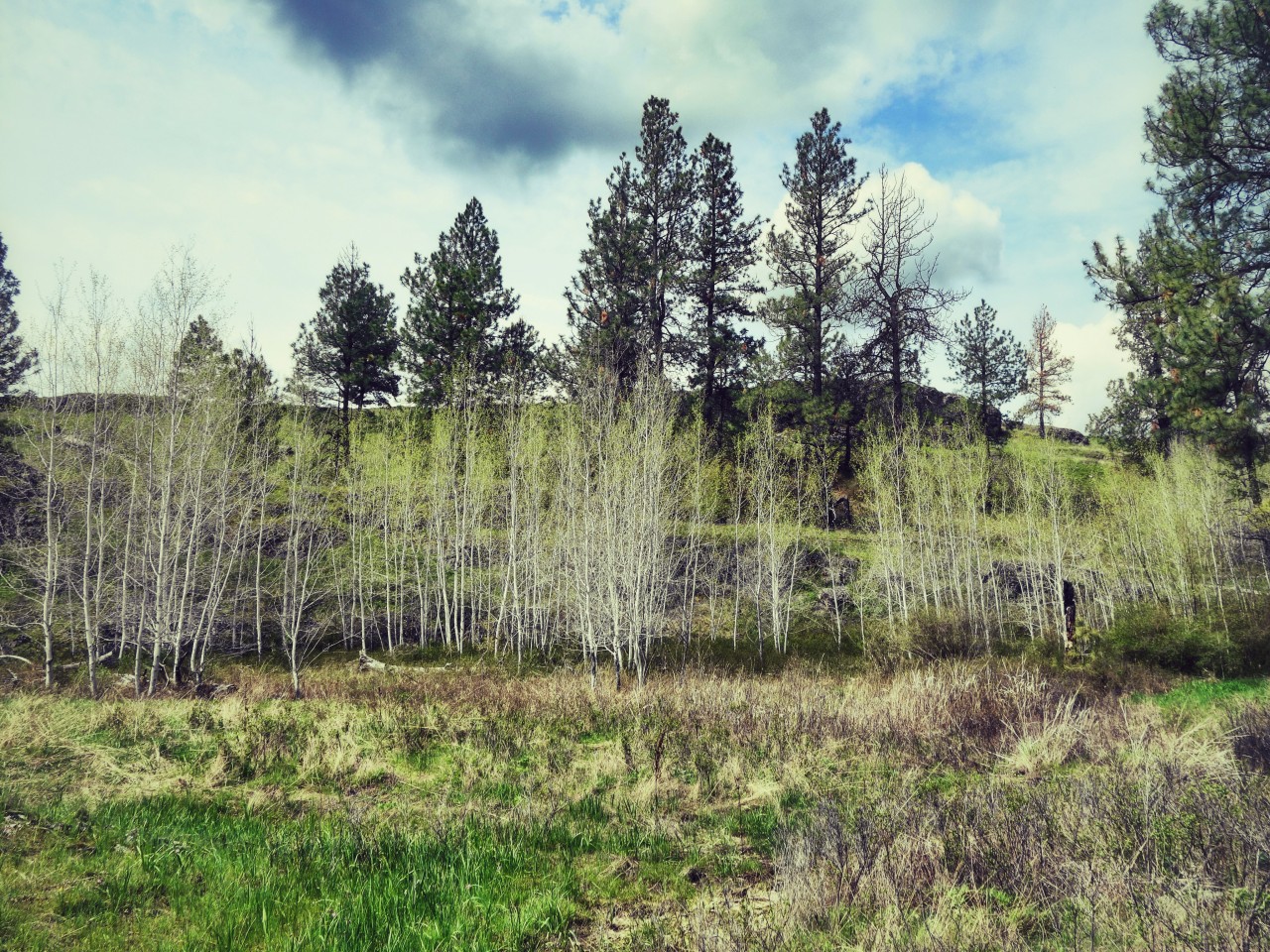Green and white grass in forest valley - 1280x960