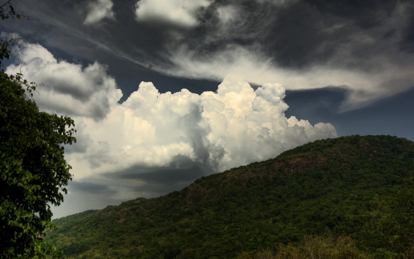 Green Hill and Clouds in Sky - 1440x900