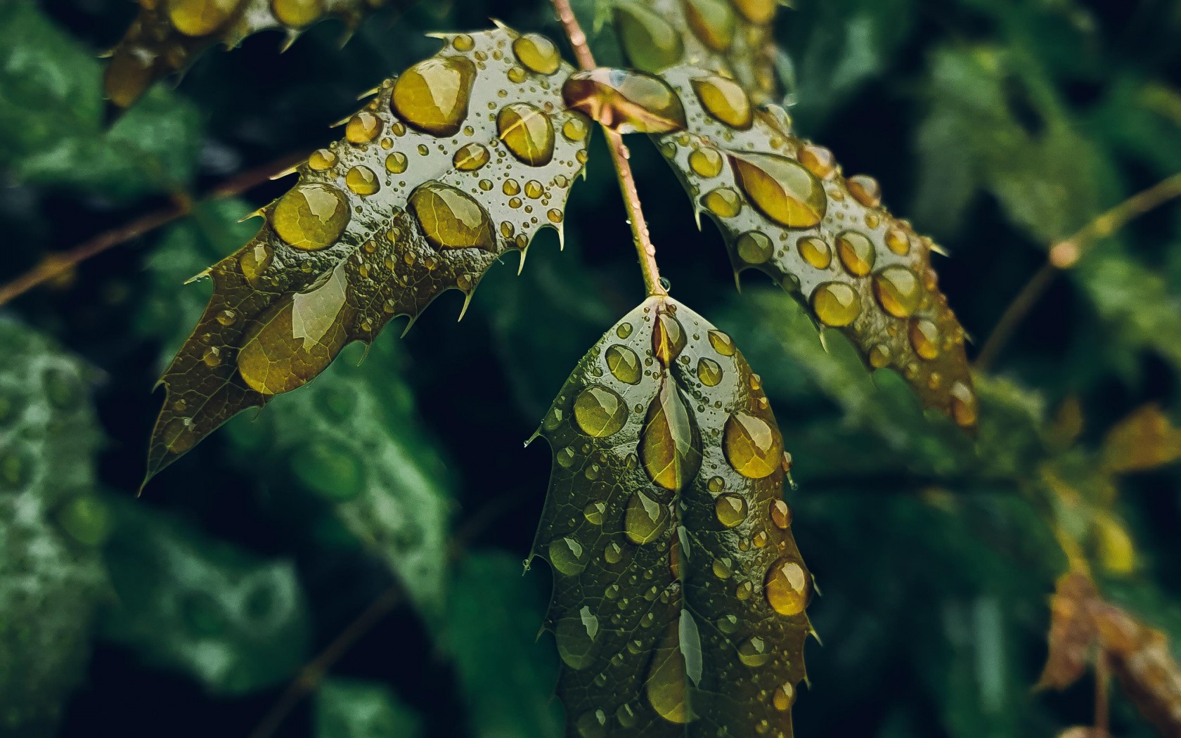 Green Leaves with Water Drops - 1680x1050