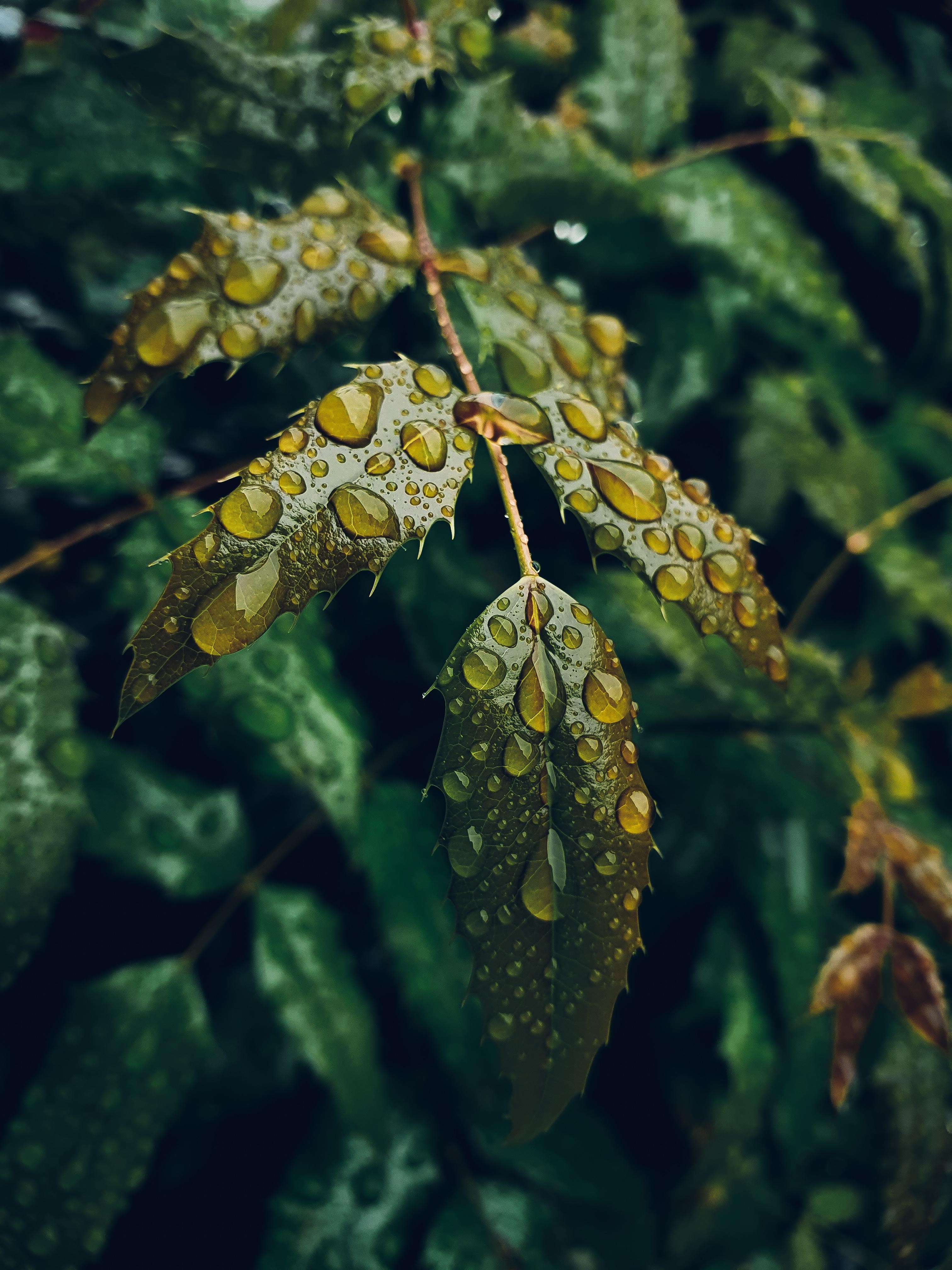 Green Leaves with Water Drops - 3024x4032