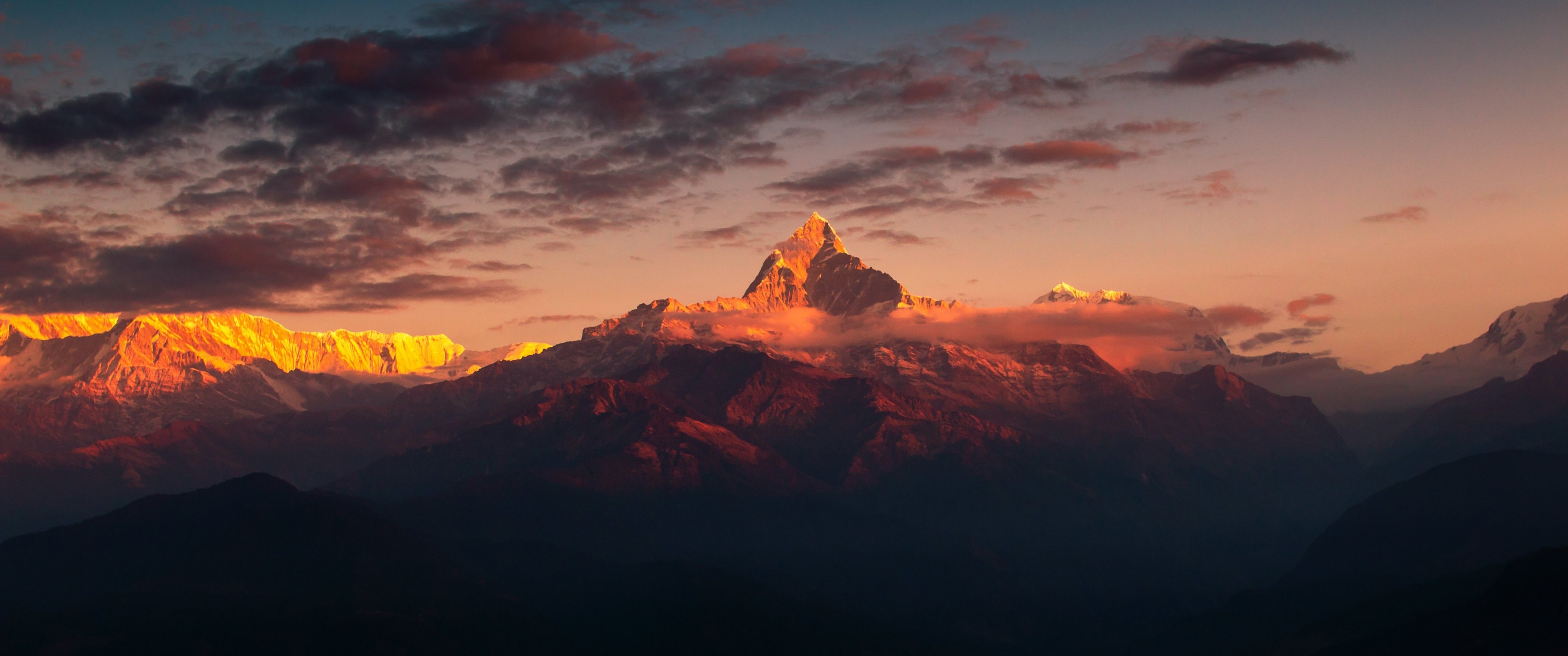 Himalayas and wonderful red sky with clouds - 3440x1440 Ultra WQHD