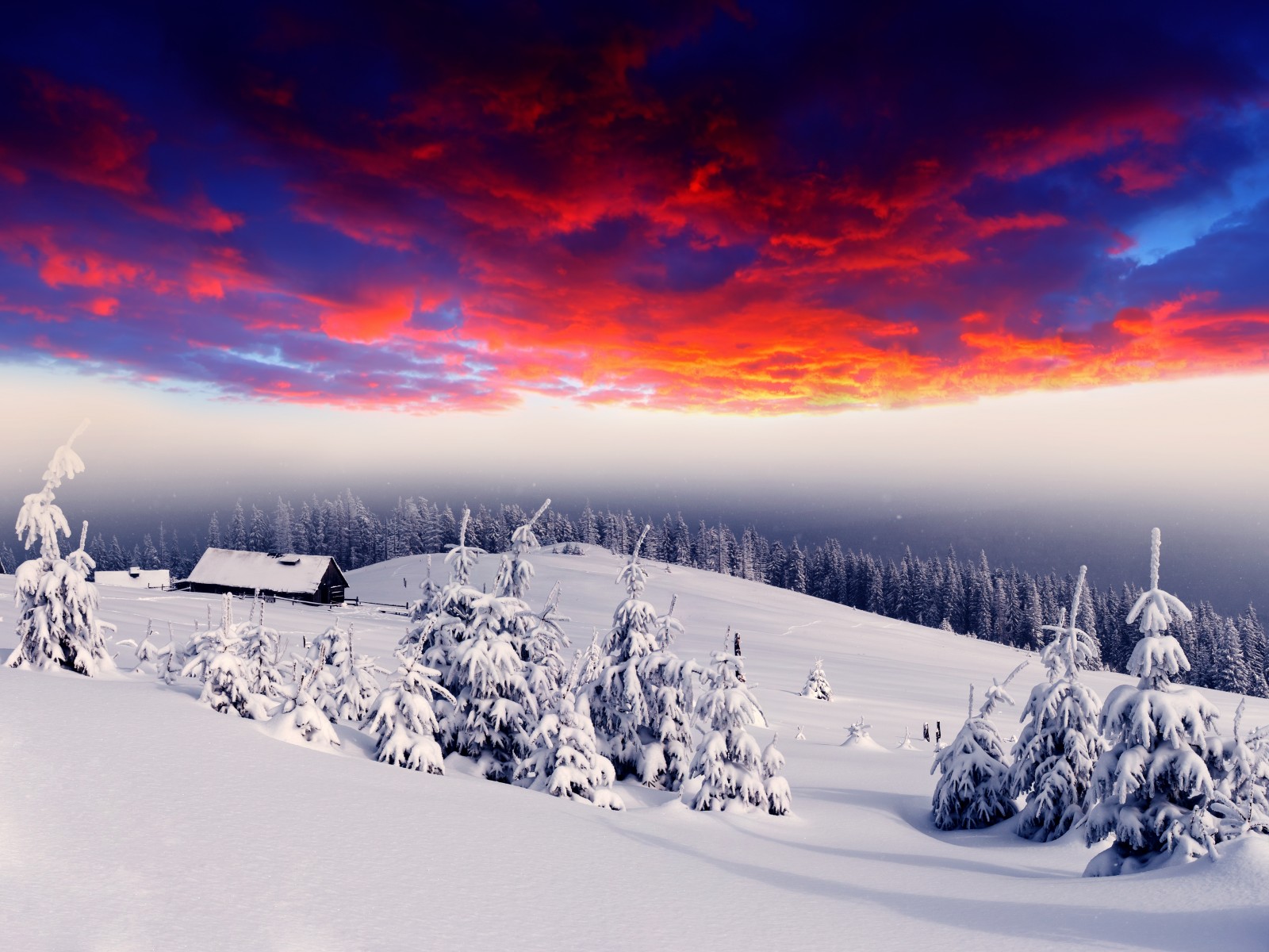 House arctic winter and freezing trees - 1600x1200