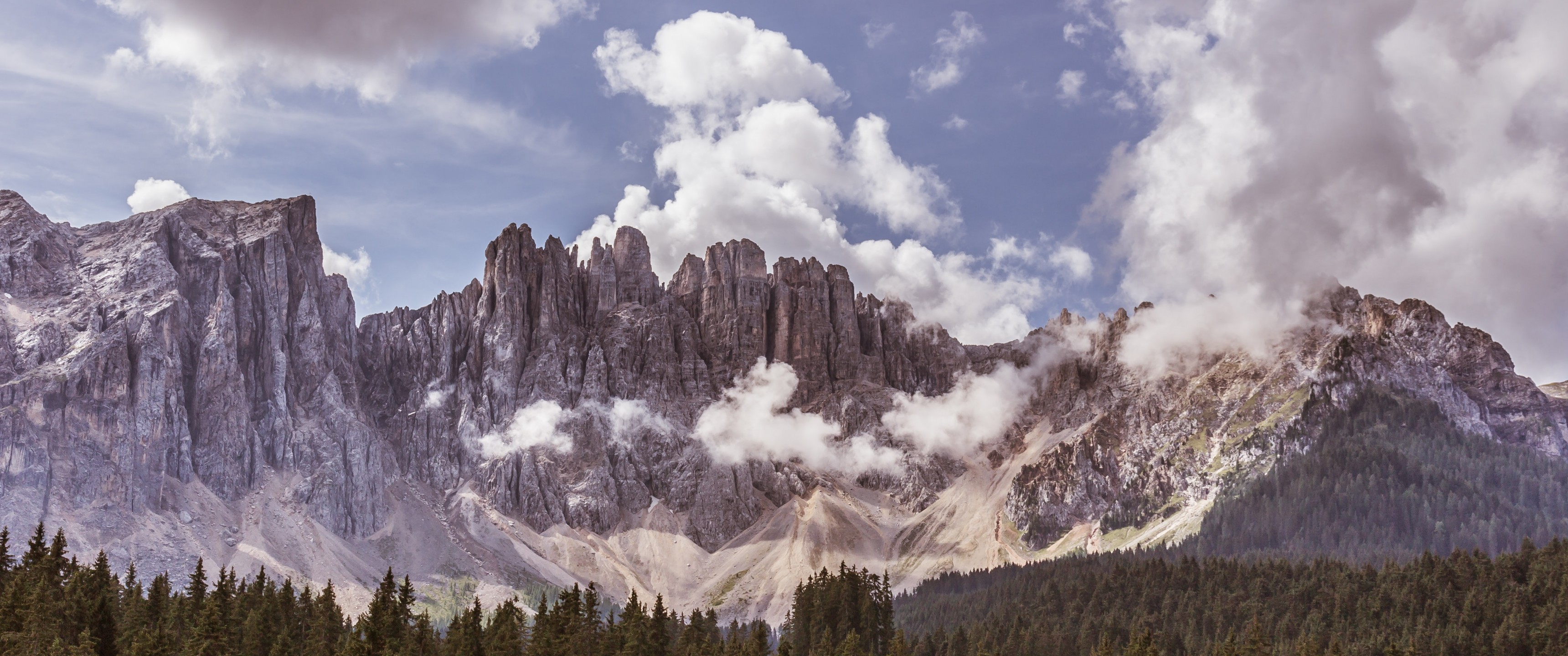 Karersee Dolomites Alps with Forest and Clouds - 3440x1440 Ultra WQHD