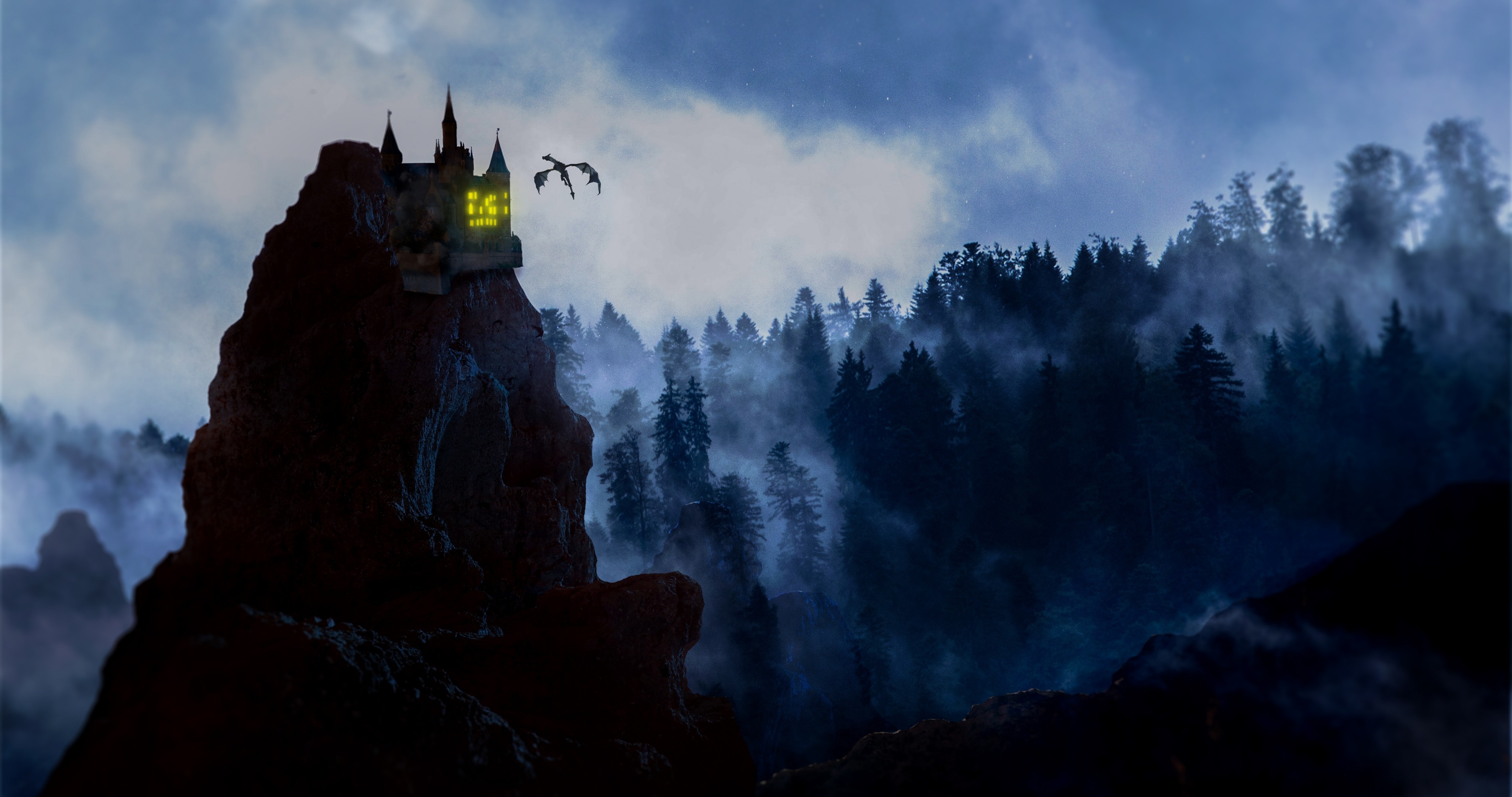Light in Castle on Hill and Dark Forest - 4096x2160 4K