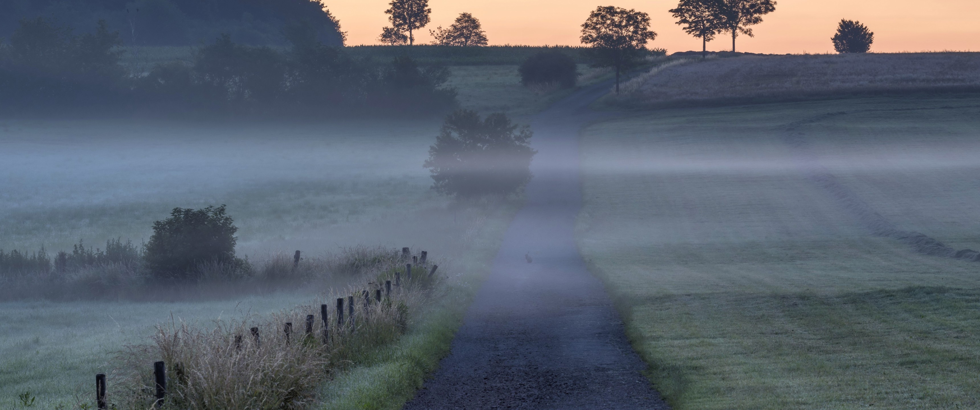 Mist on Field and Road - 3440x1440 Ultra WQHD