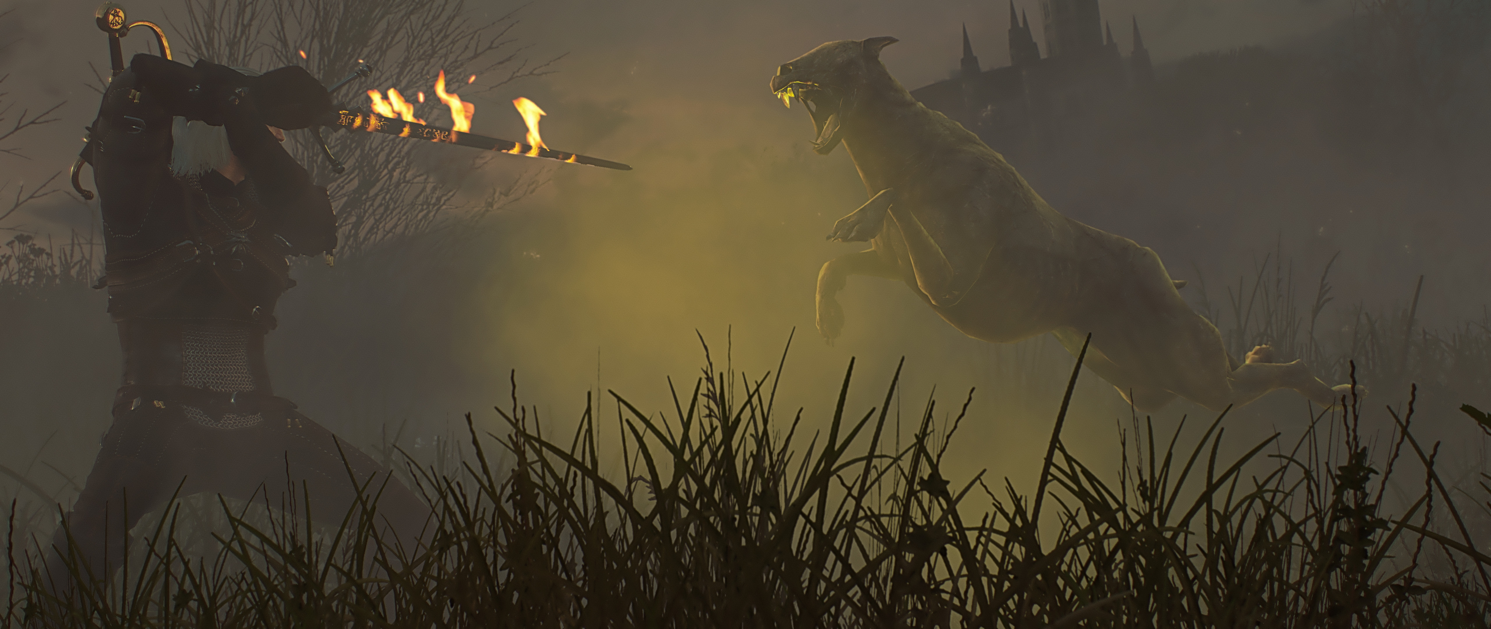 Monster Dog and Warrior with Sword - 5120x2160