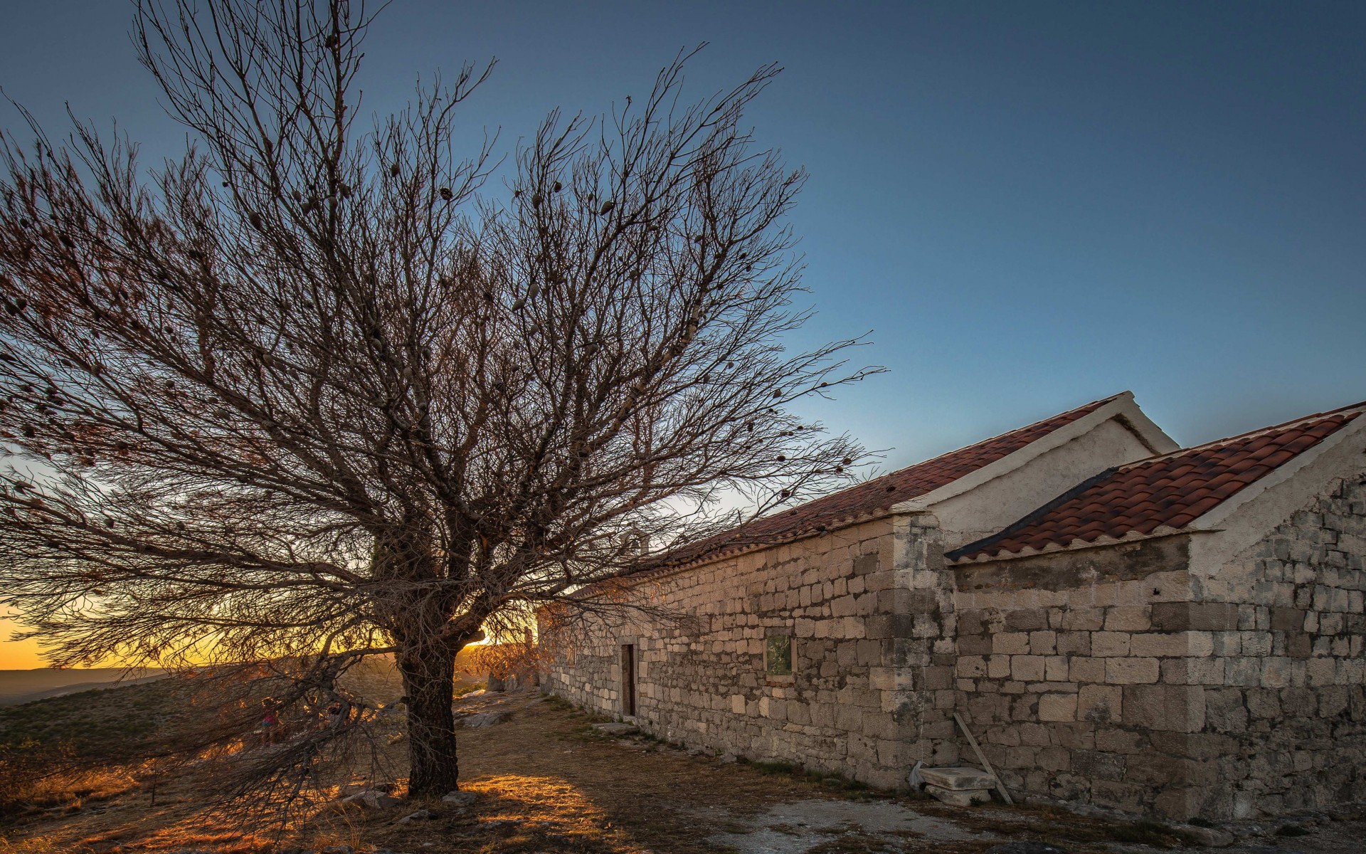 Morning sunshine breathtaking single tree and house - 1920x1200