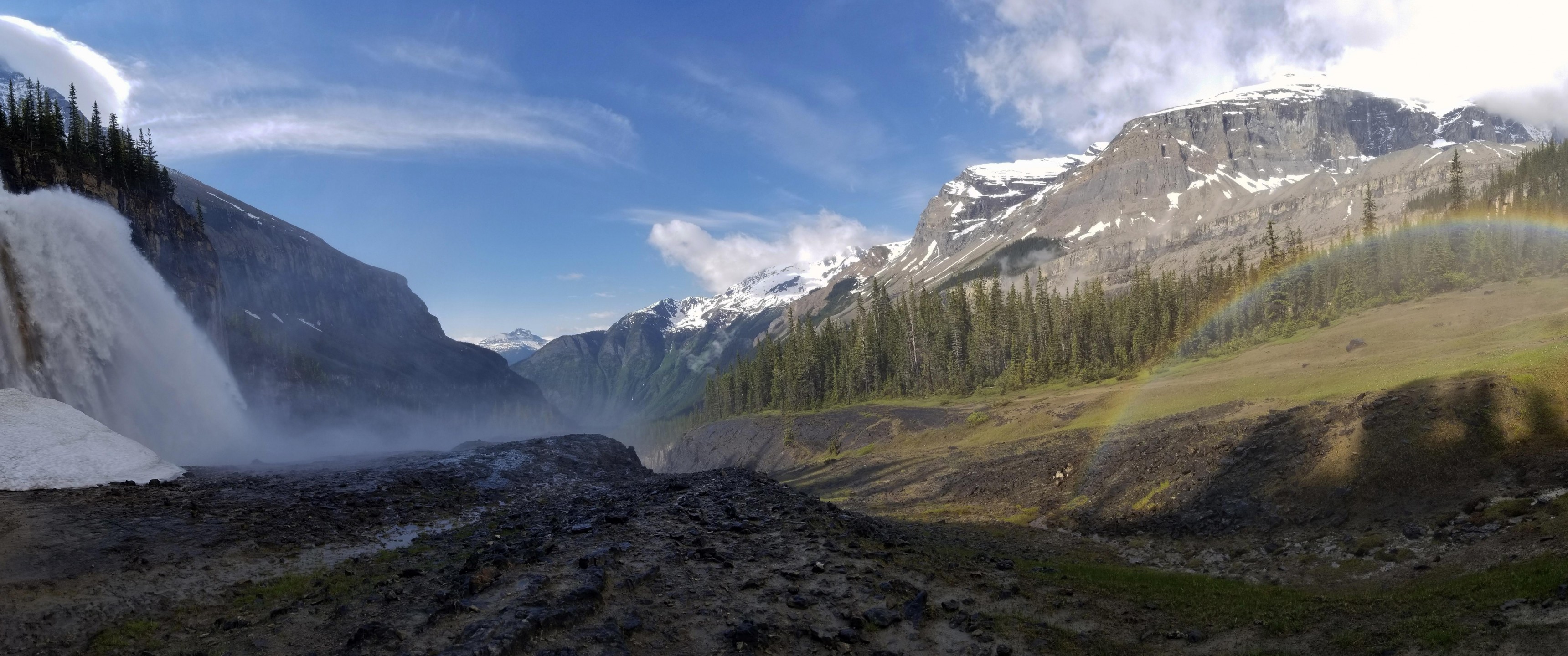 Mountains Waterfall and Green Forest - 3440x1440 Ultra WQHD
