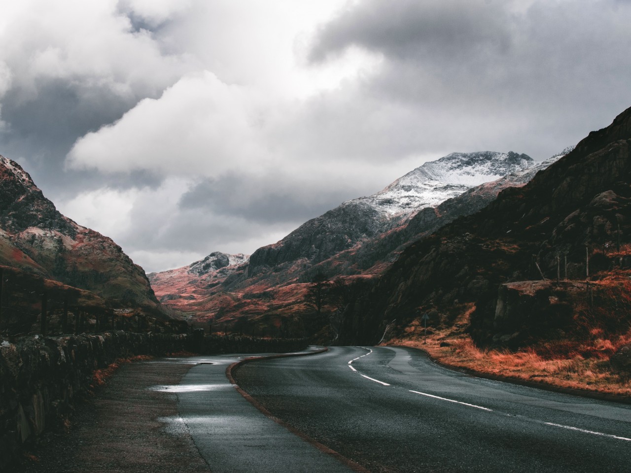 Murky Weather in Dead Valley Mountains and Road - 1280x960