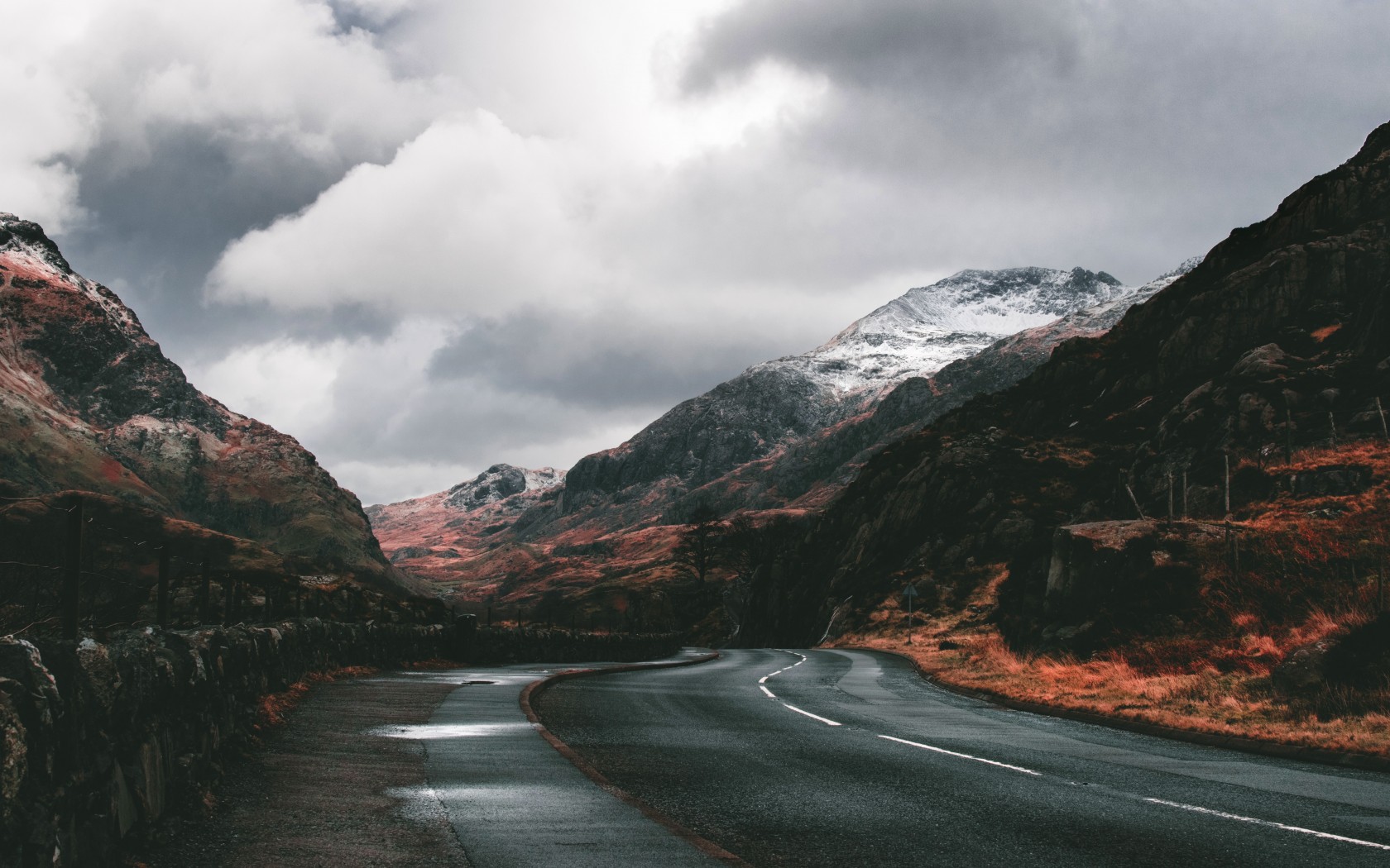 Murky Weather in Dead Valley Mountains and Road - 1680x1050