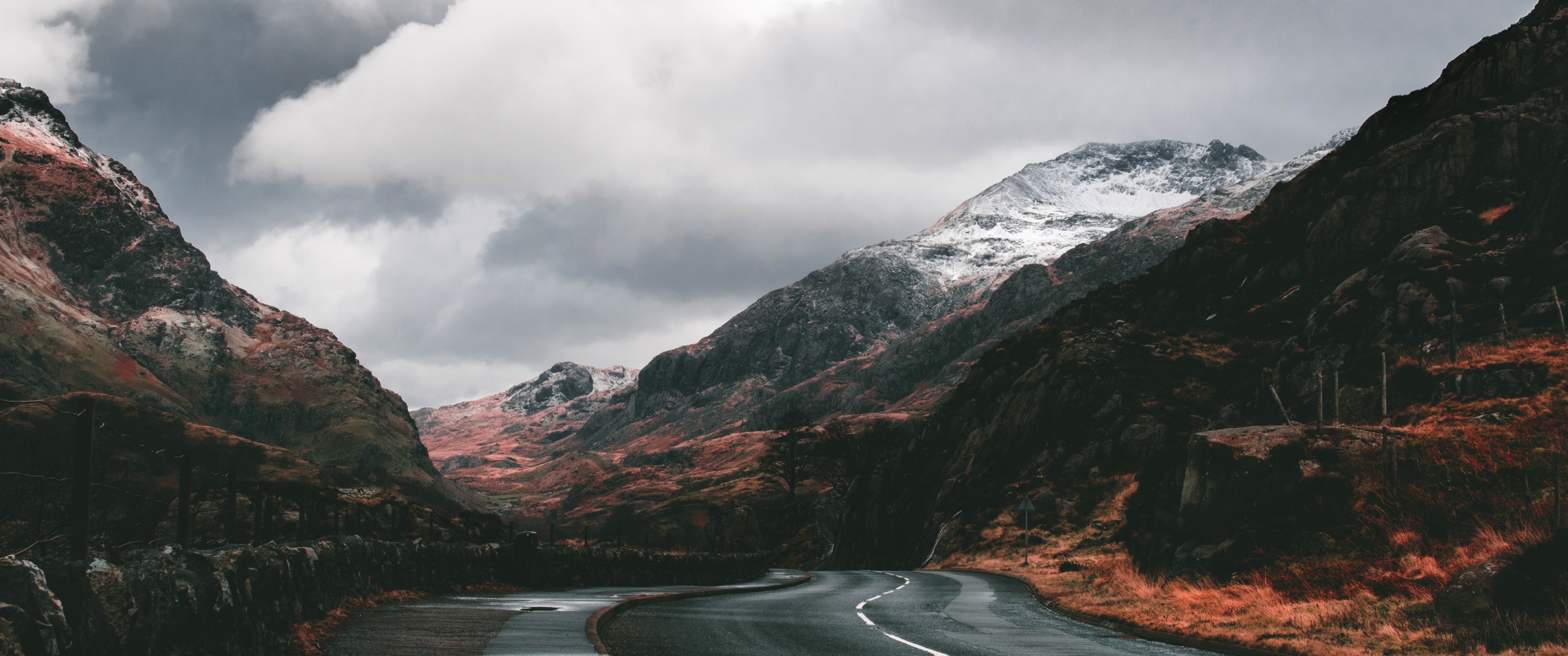 Murky Weather in Dead Valley Mountains and Road - 3440x1440 Ultra WQHD