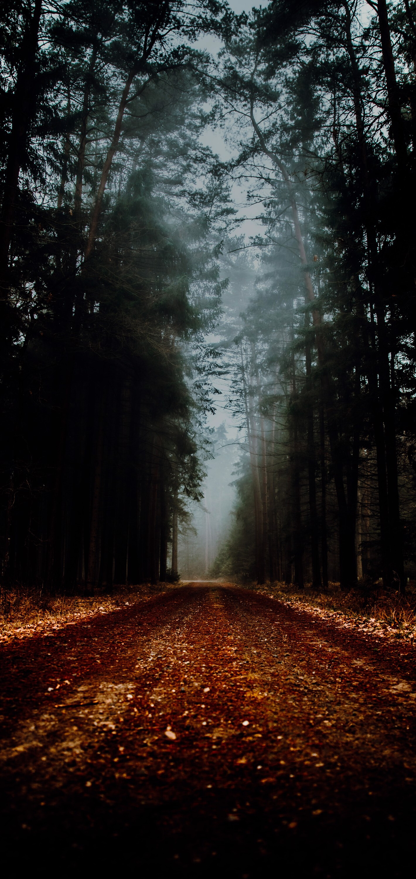 Old Autumn Forest and Road with Leaves - 1420x3000