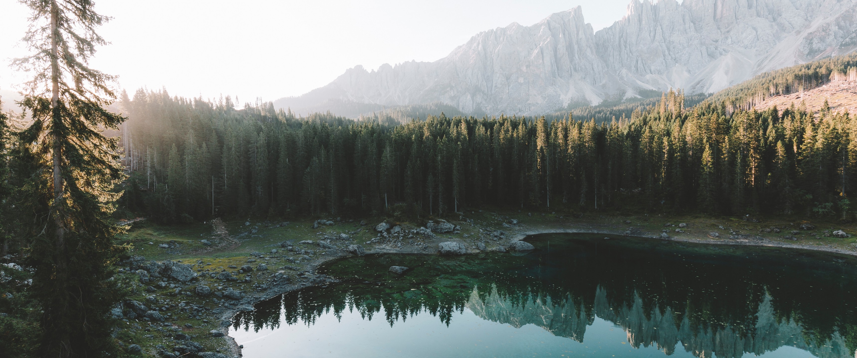 Old Fir Forest and Reflection on Lake - 3440x1440 Ultra WQHD