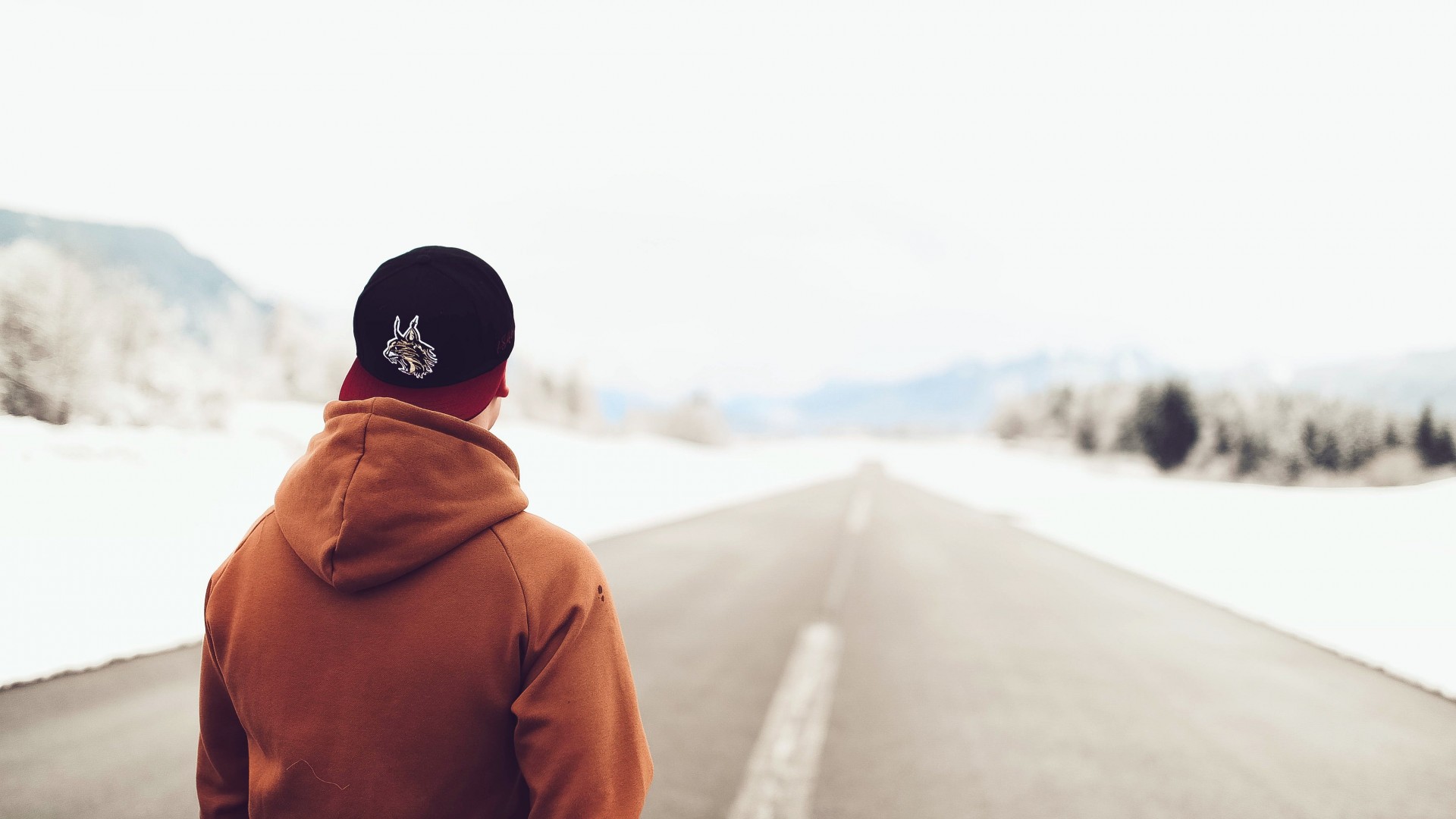 Person in Brown Hoodie Standing on Asphalt Road - 1920x1080 (1080p)