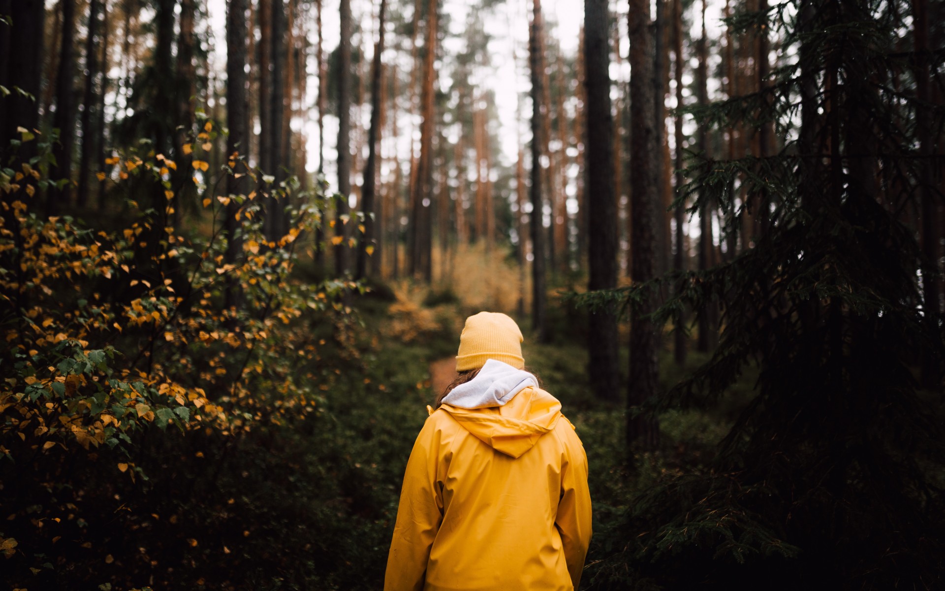 Person in Yellow Hoodie Standing in Forest - 1920x1200