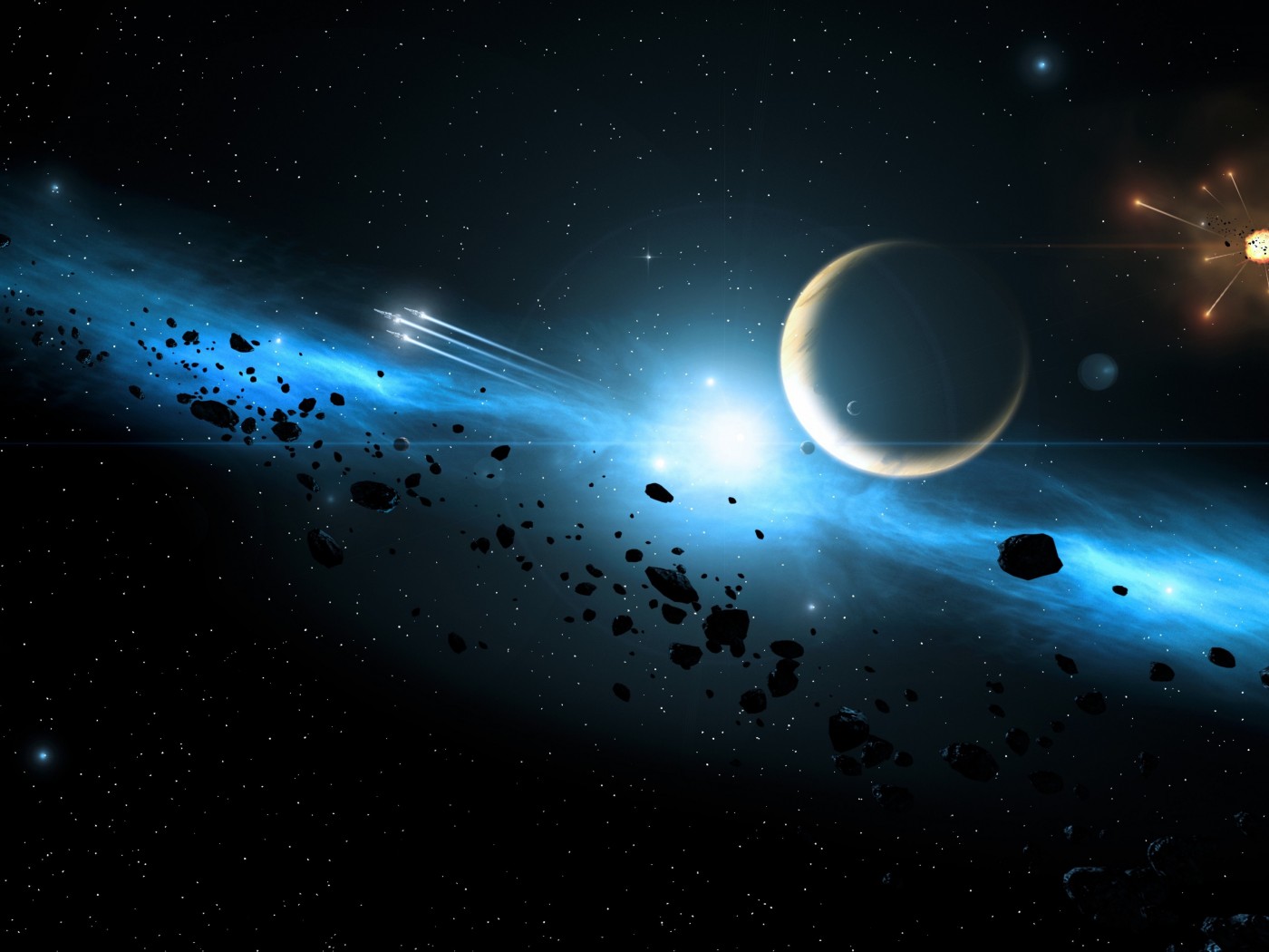 Planets Supernova and Beautiful Blue Galaxy - 1400x1050