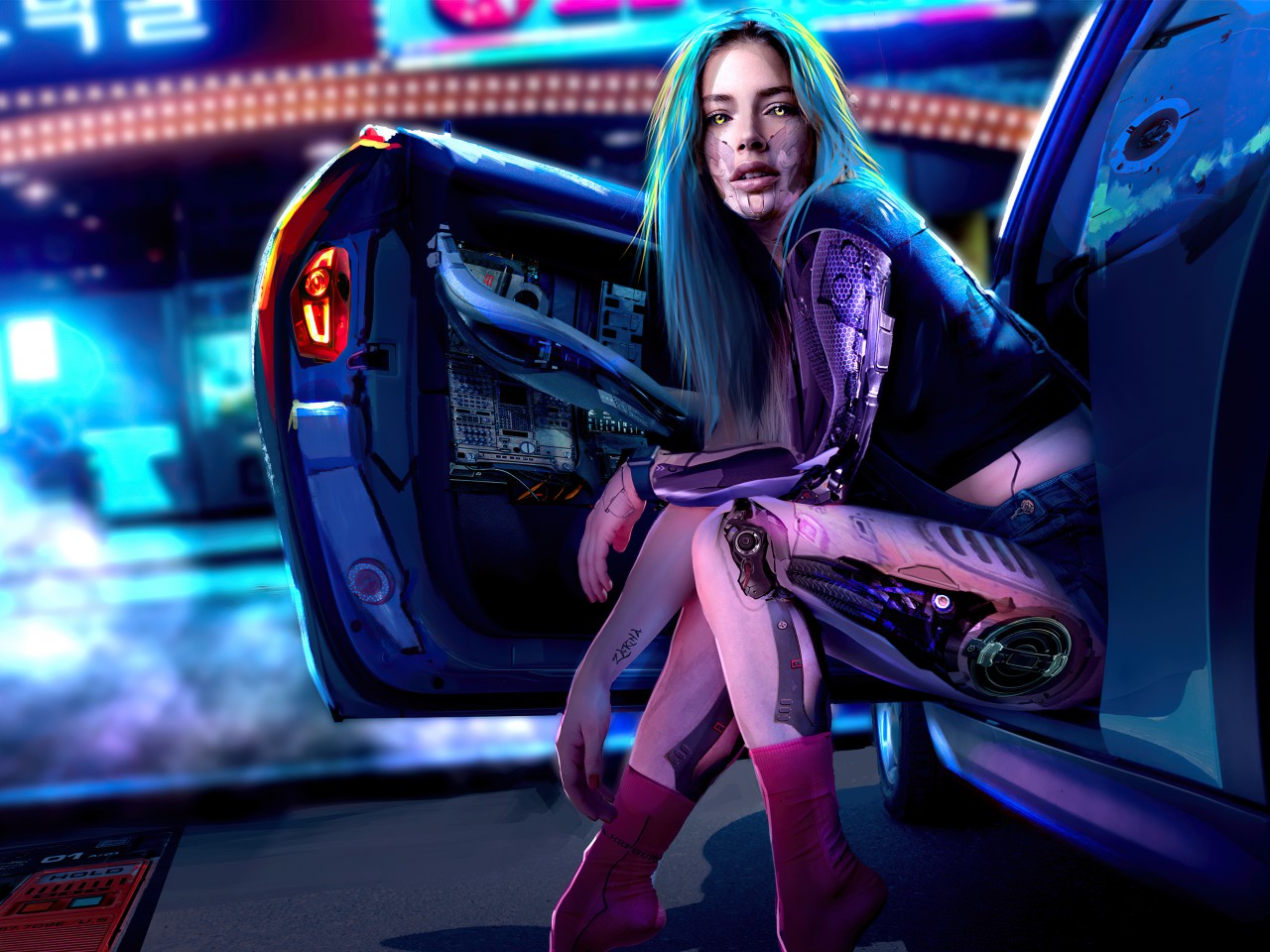 Pretty Cyborg Girl in Car Cyberpunk 2077 - 1280x960