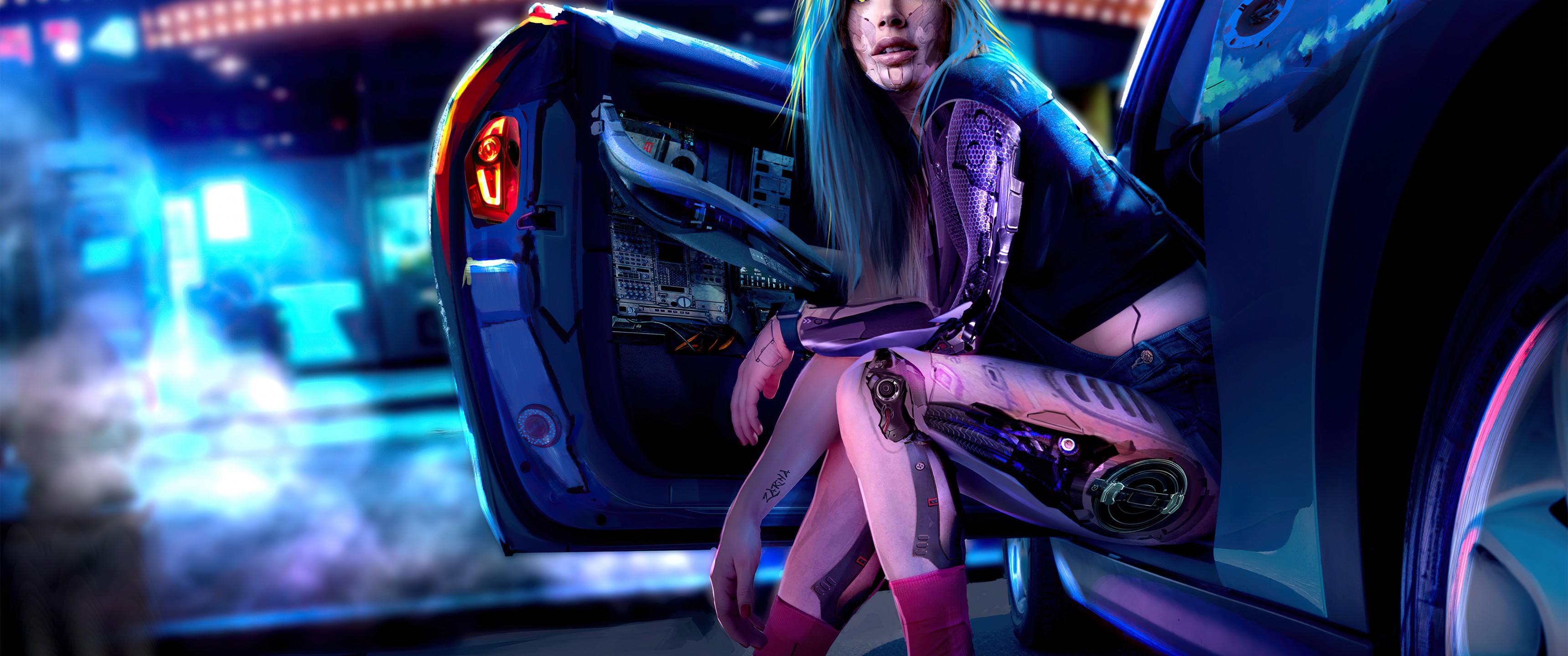 Pretty Cyborg Girl in Car Cyberpunk 2077 - 3440x1440 Ultra WQHD