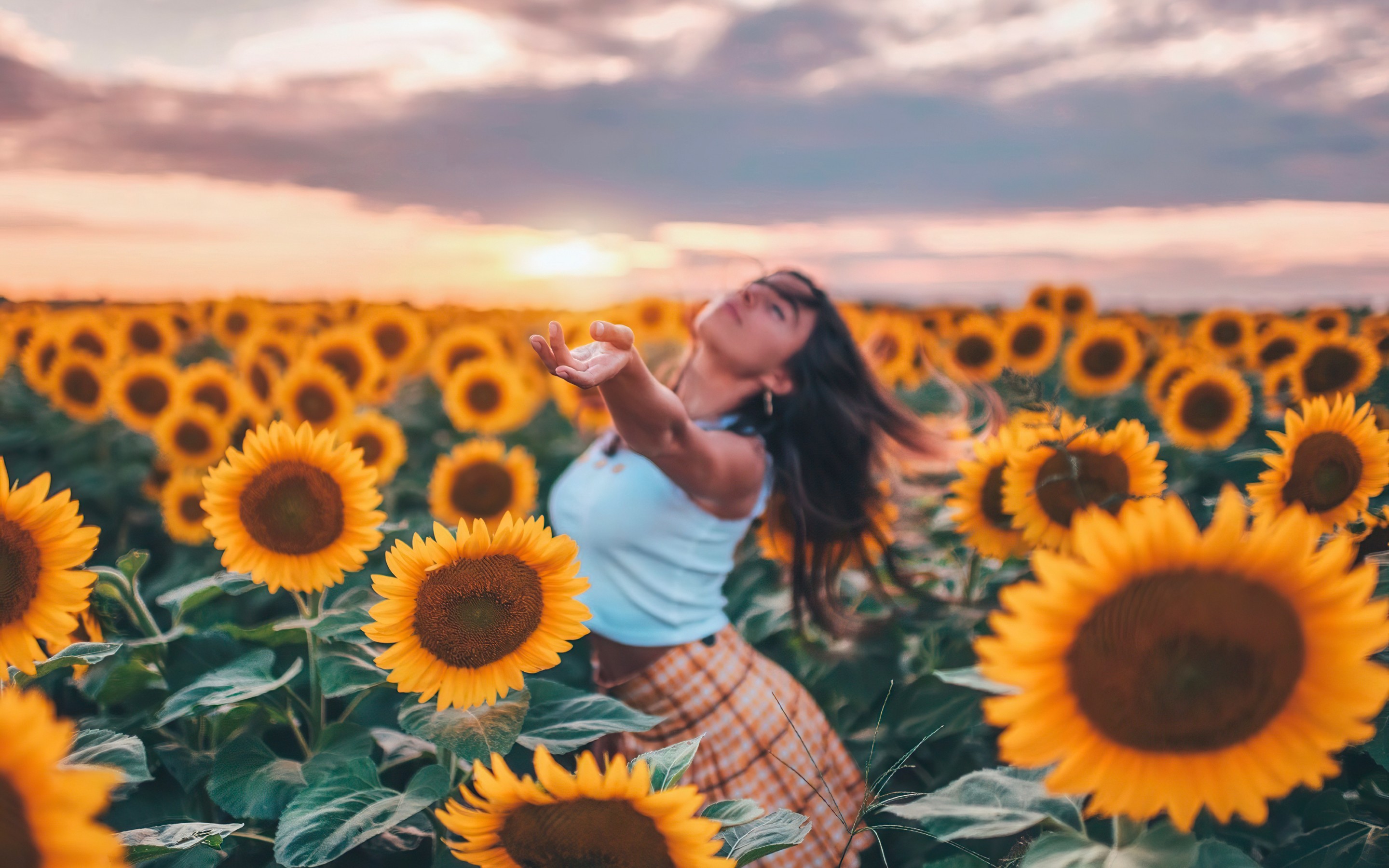 Pretty Young Girl in Sunflowers - 2880x1800