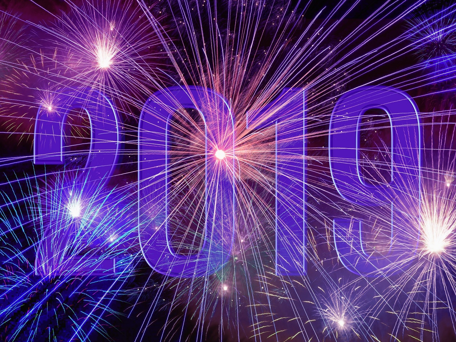 Purple Fireworks and Happy New Year 2019 - 1600x1200