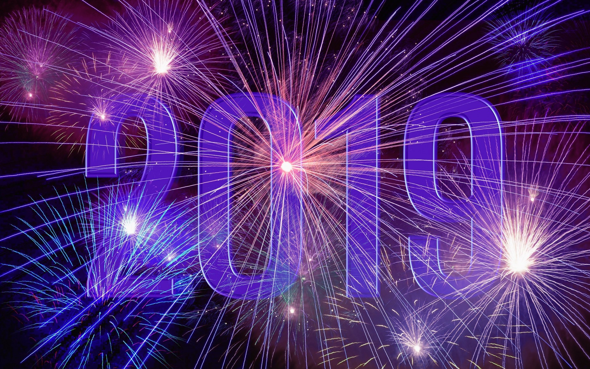 Purple Fireworks and Happy New Year 2019 - 1920x1200