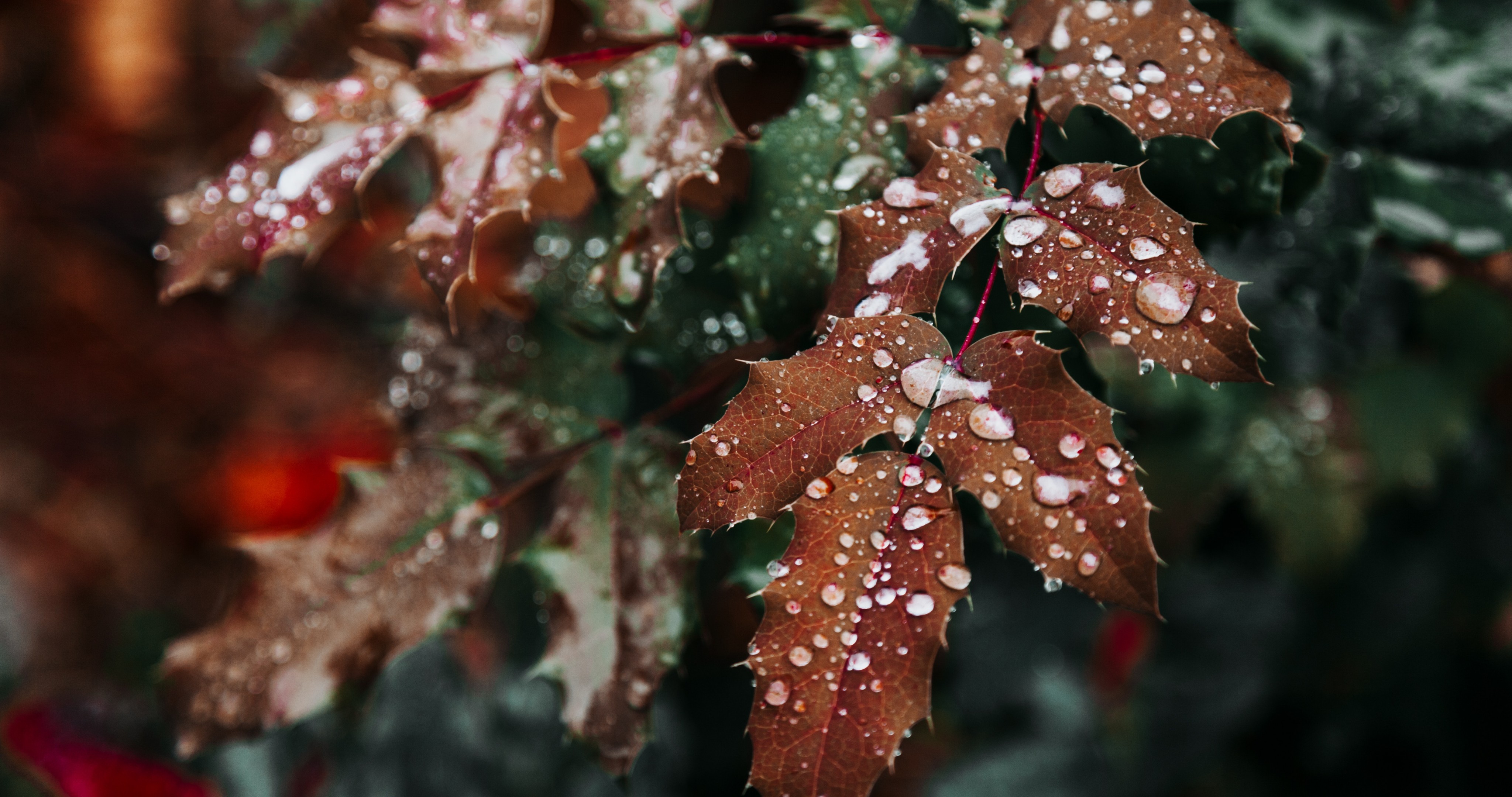 Red and Green Leaves and Water Drops - 4096x2160 4K