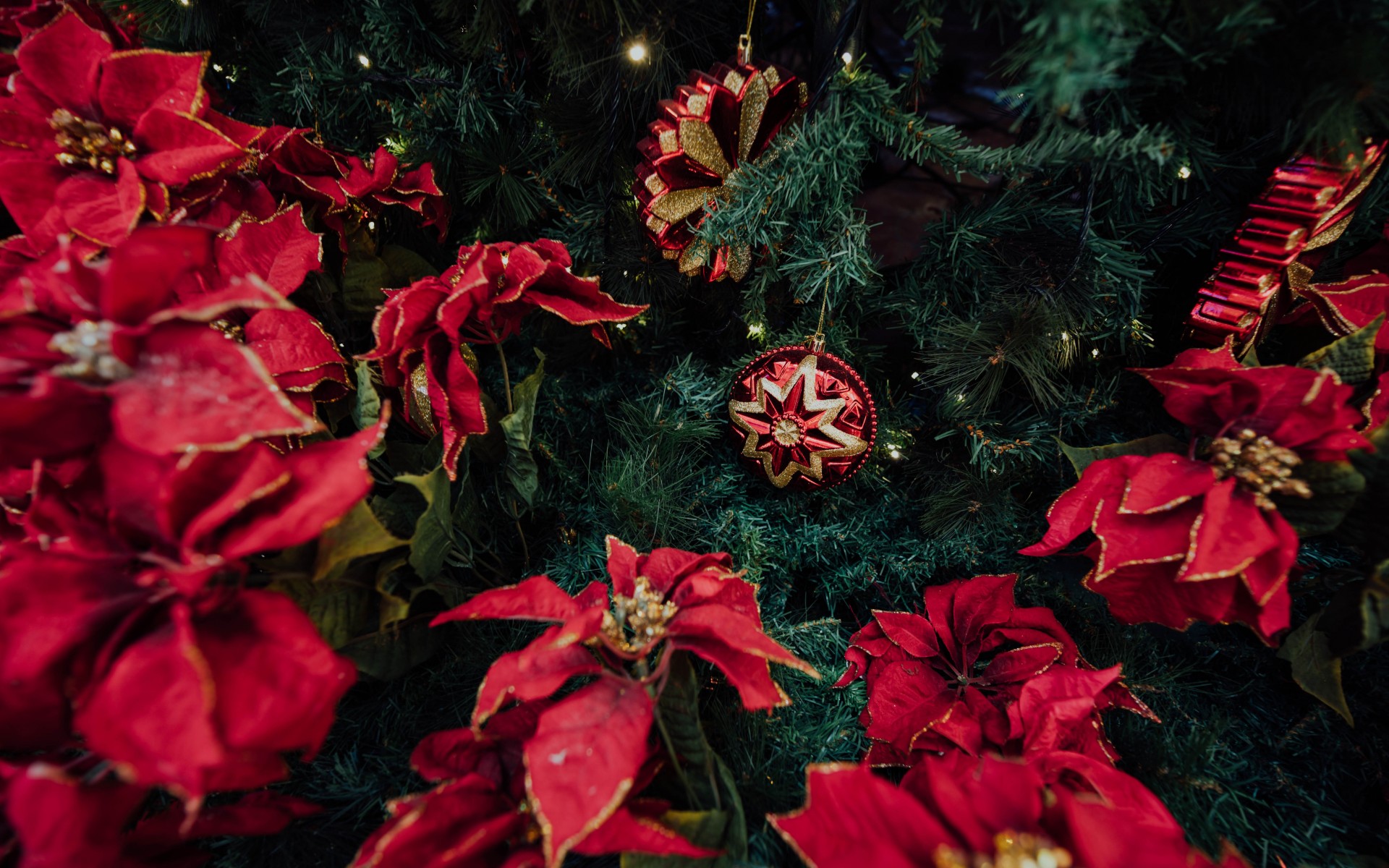 Red and Yellow Flowers with Green Leaves on Background - 1920x1200