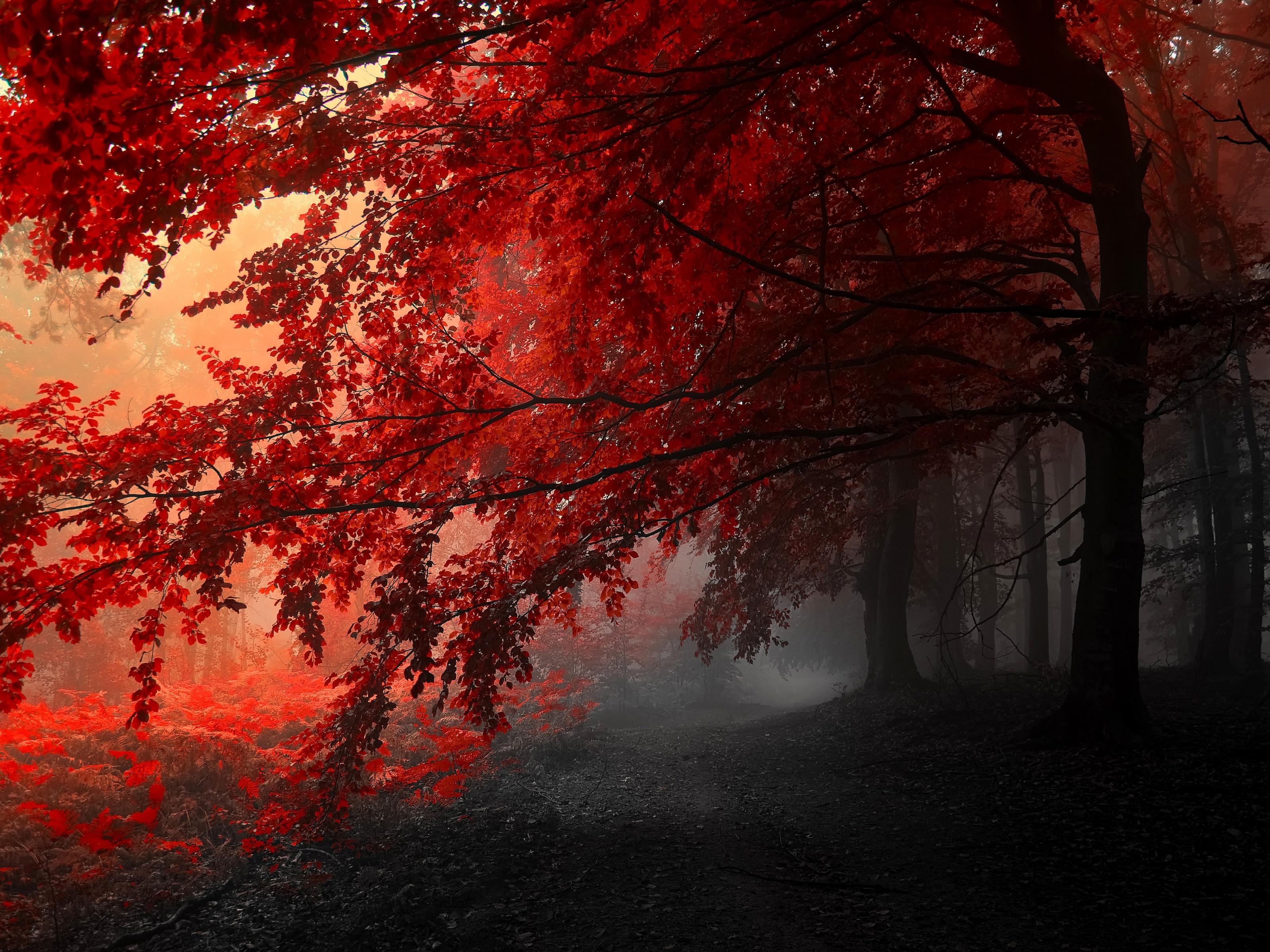 Red Leaves on the Trees in Autumn Forest - 3200x2400