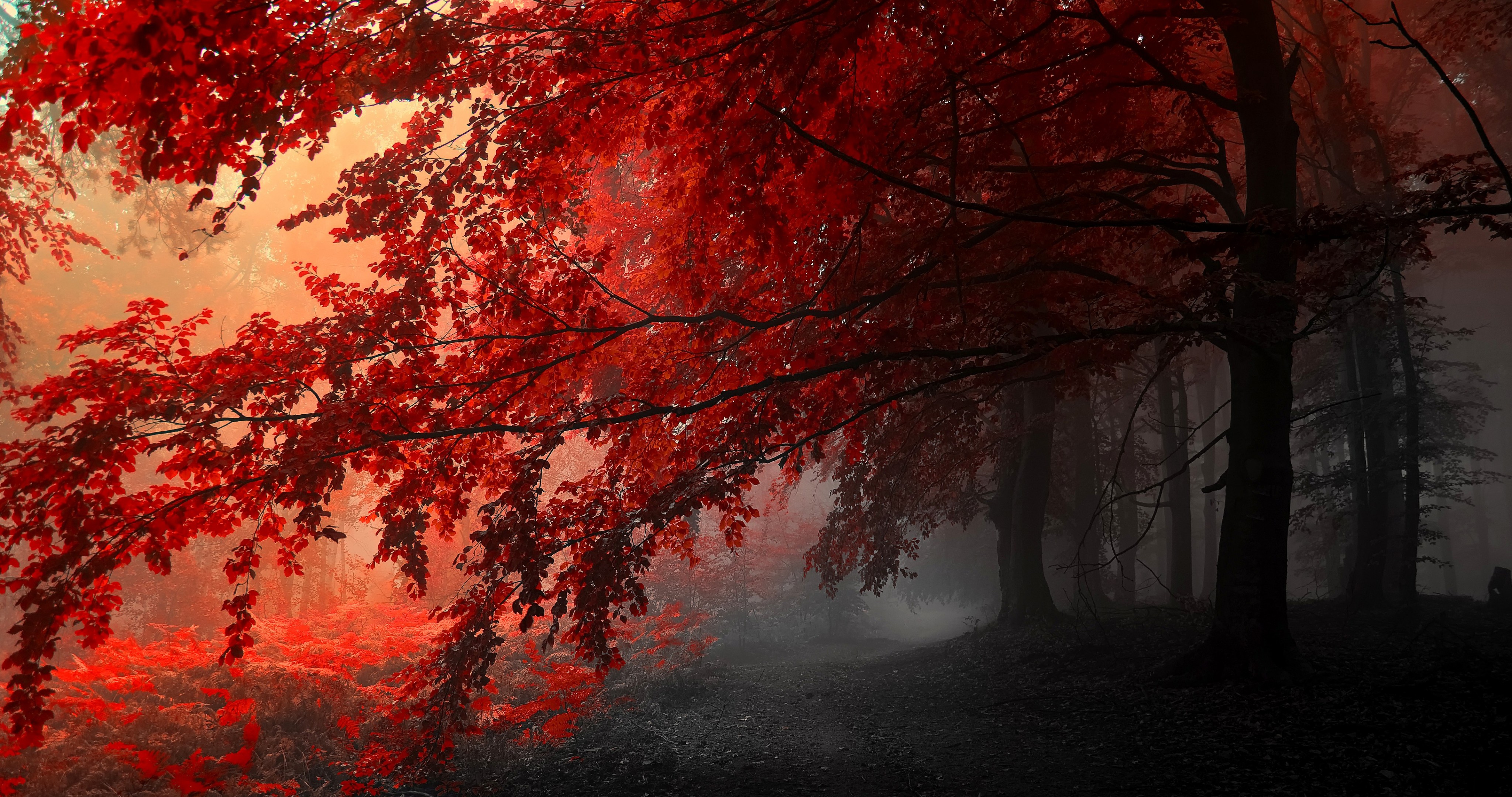 Red Leaves on the Trees in Autumn Forest - 4096x2160 4K