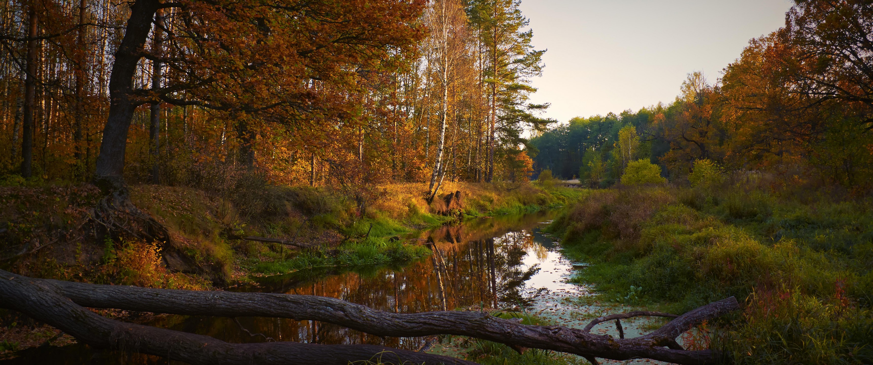 River and Autumn Trees Around - 3440x1440 Ultra WQHD
