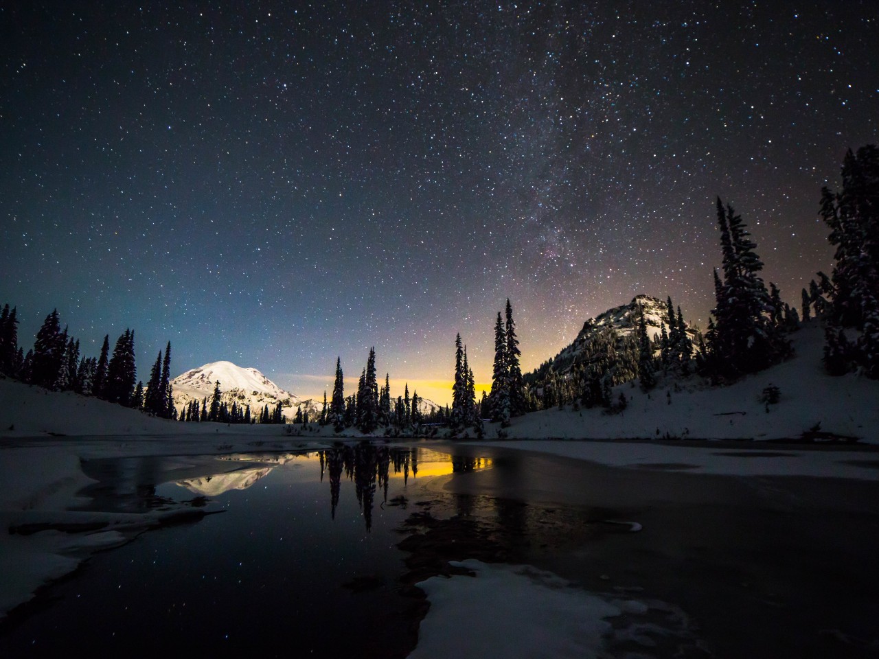 River and Beautiful Dusk in Winter Valley - 1280x960