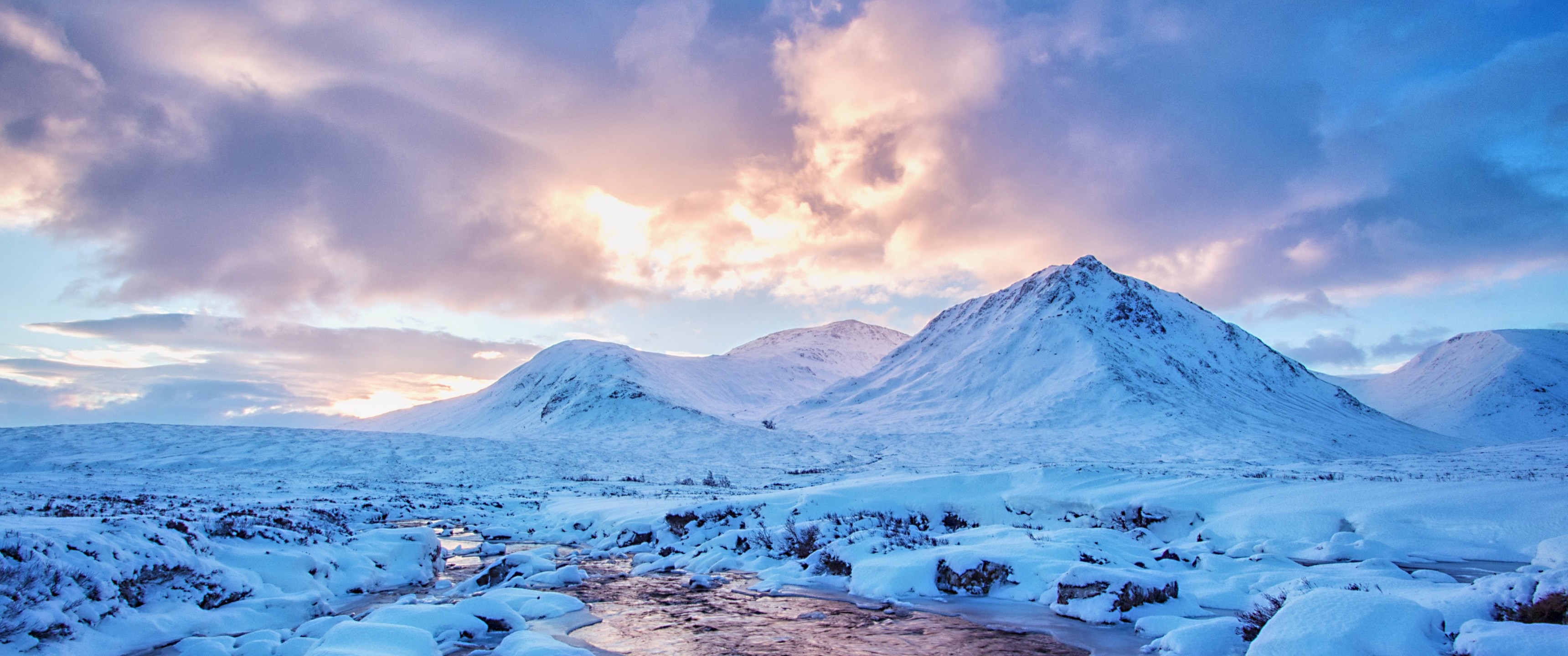 River in Winter Mountain Valley - 3440x1440 Ultra WQHD