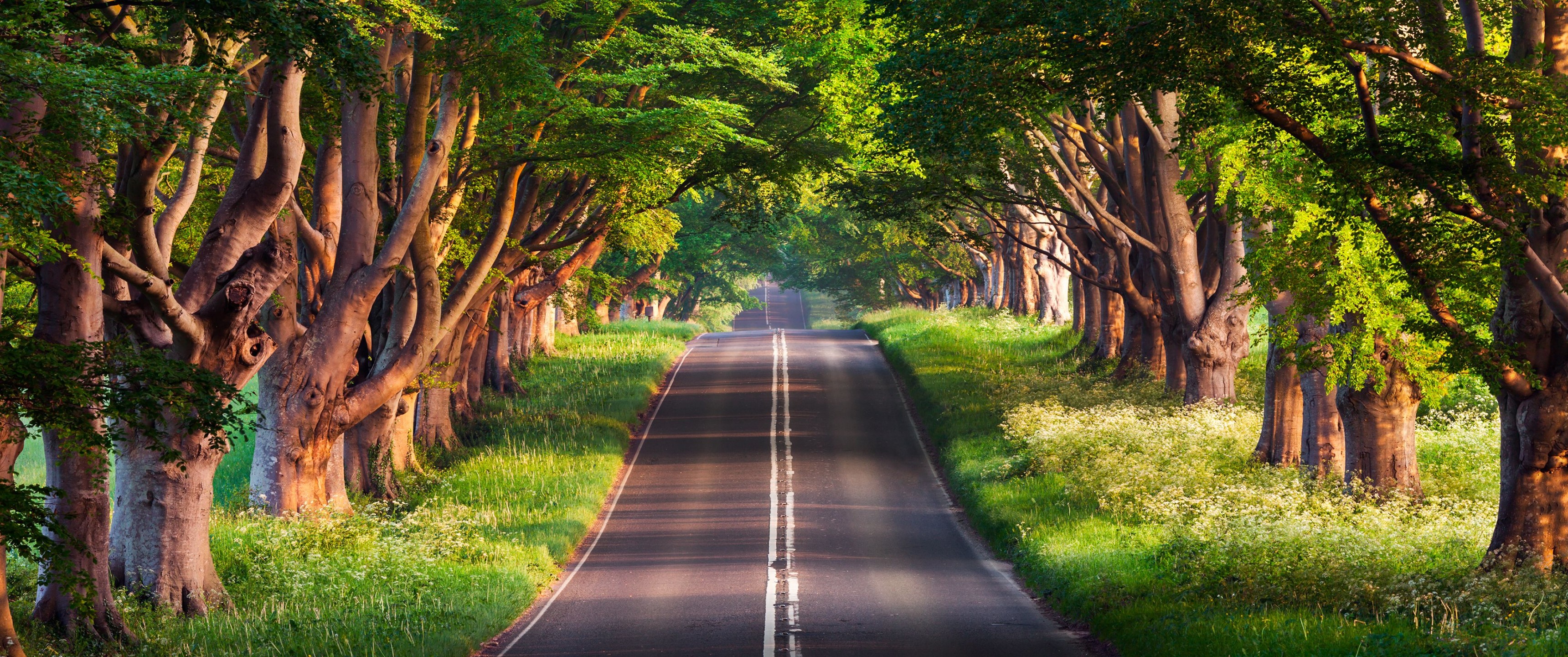 Road in Beautiful Summer Green Forest - 3440x1440 Ultra WQHD
