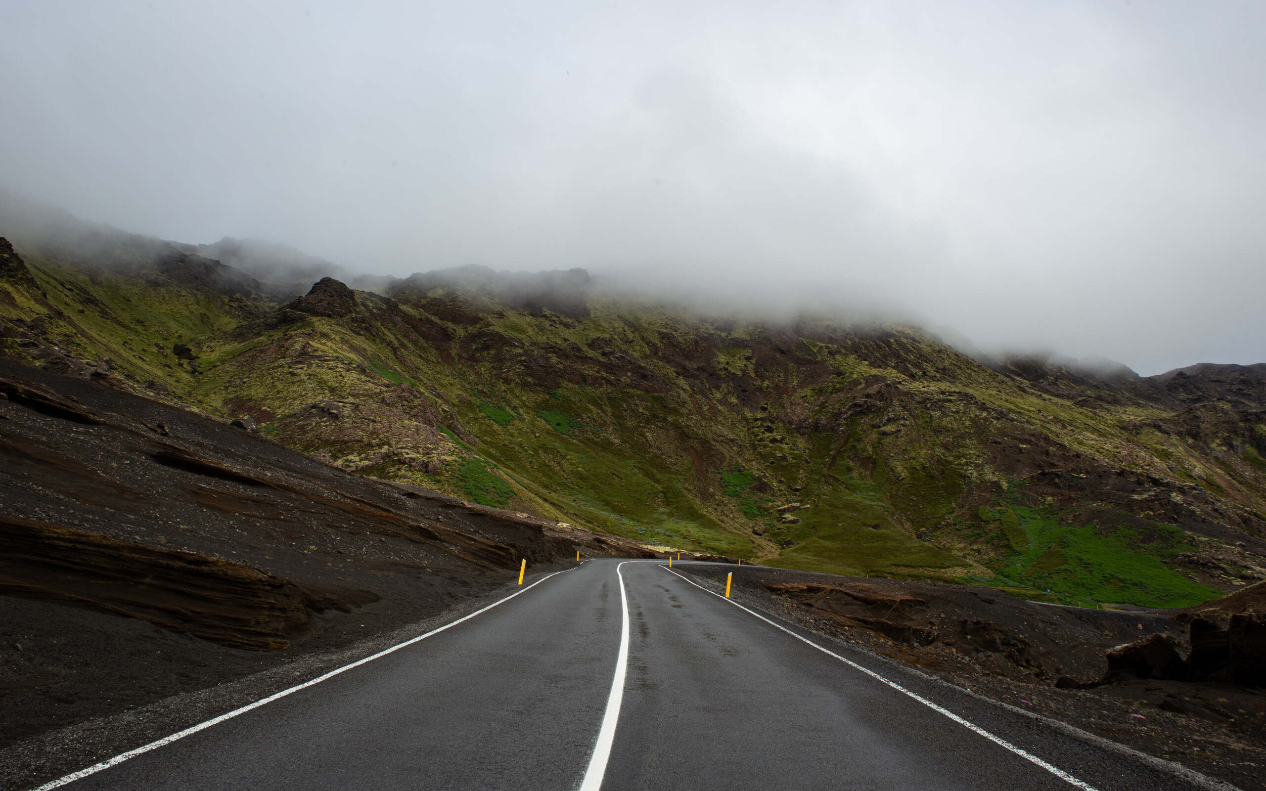 Road in Mountains and Fog on Hills - 2560x1600