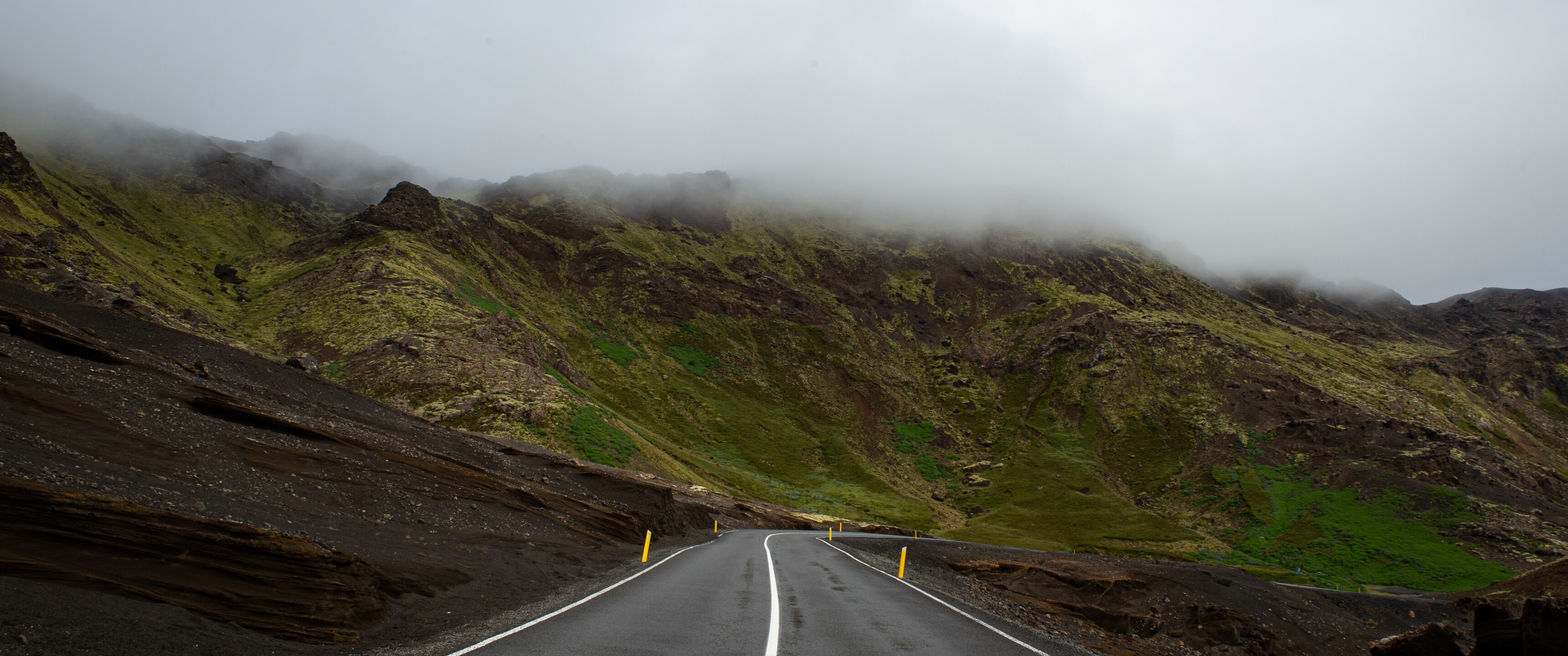 Road in Mountains and Fog on Hills - 3440x1440 Ultra WQHD