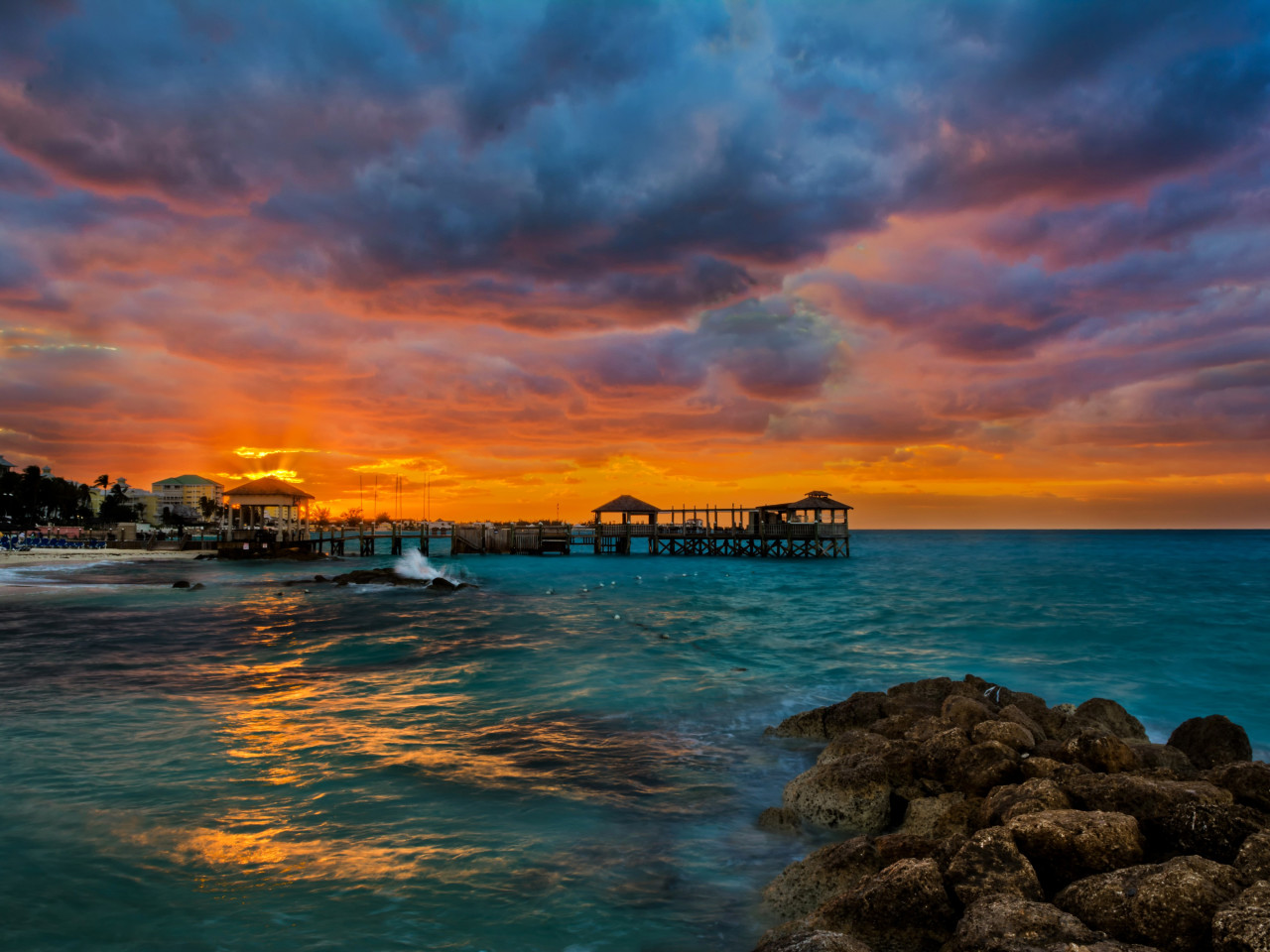 Rocks sunlight and waves on the beach - 1280x960
