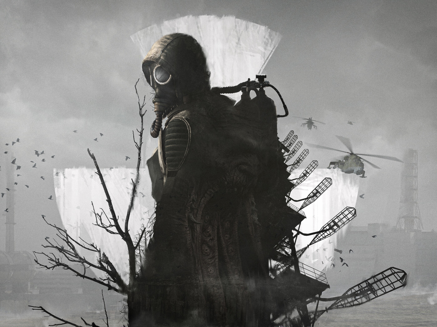 S.T.A.L.K.E.R. 2 Stalker in Gasmask and Radar Duga - 1400x1050