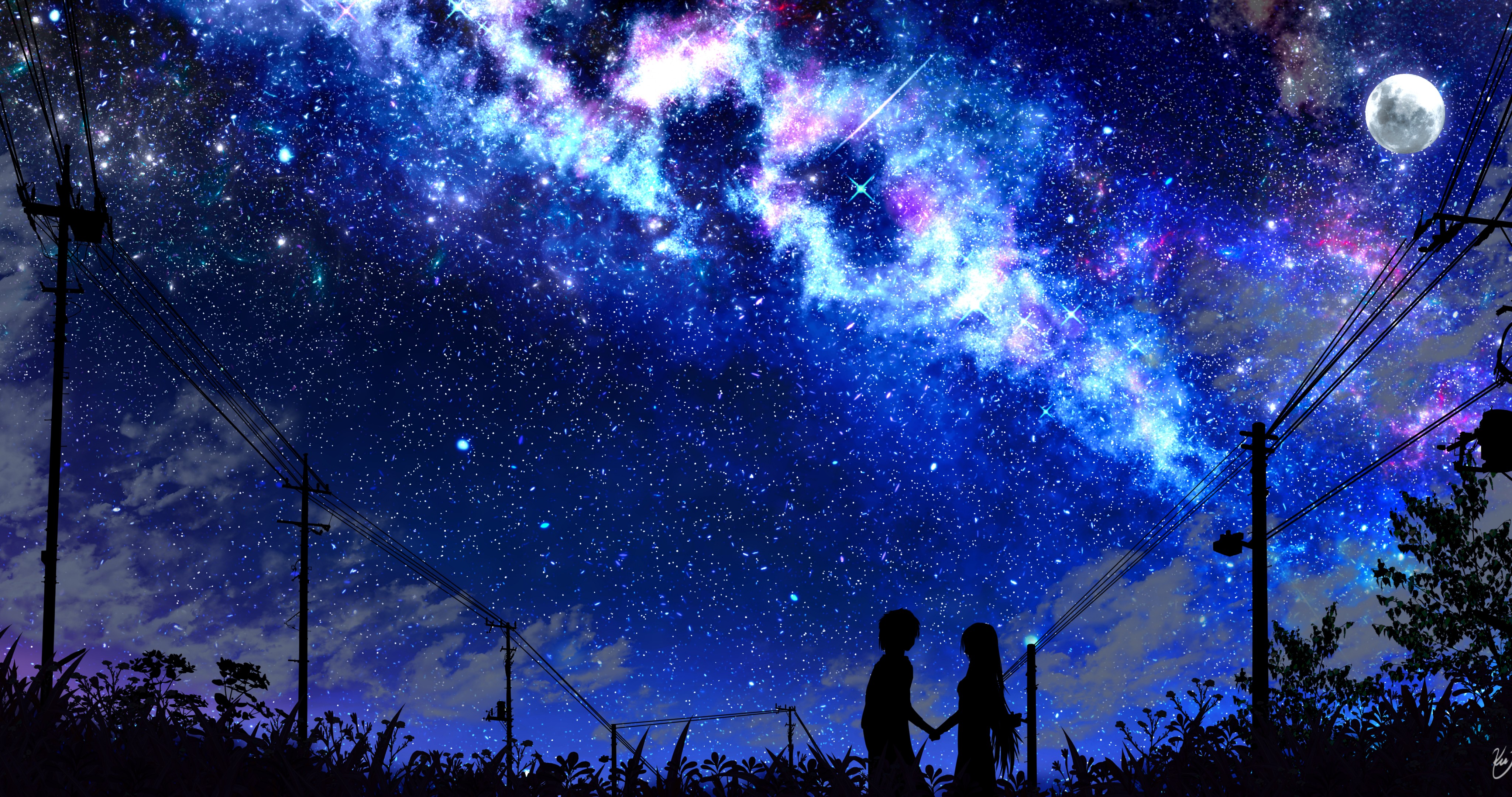 Silhouette of Man Standing under Starry Night Sky - 4096x2160 4K